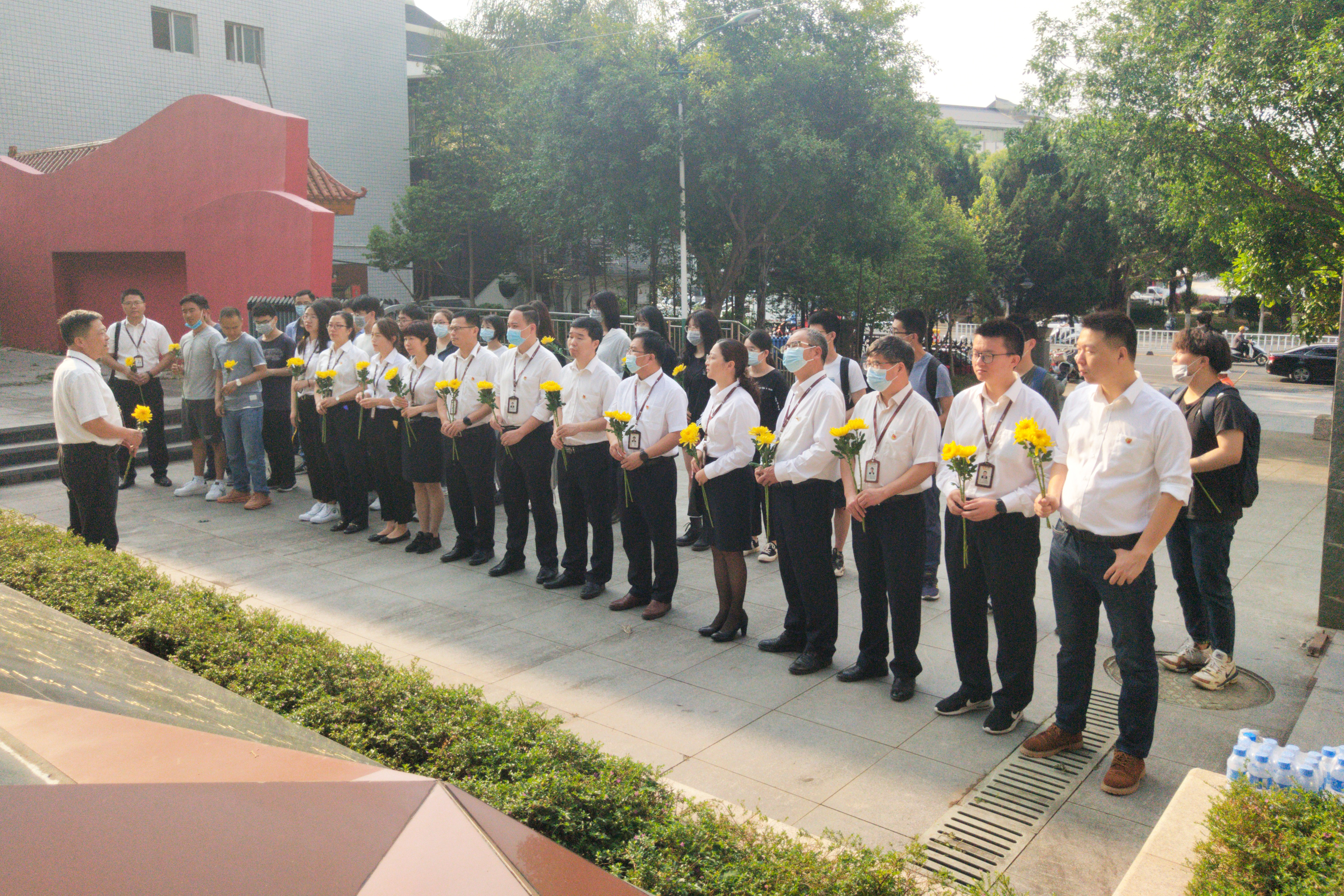活动伊始,在罗诗涵同学的主持下,全体祭扫人员在革命烈士陵墓前默哀一分钟。默哀结束,集团党群部常务副部长林钦权同志为在场党员上党史学习教育微党课,林副部长讲到:“清明节祭扫活动是为了缅怀革命先烈,继承革命传统,只有缅怀英雄,才能够成为英雄,我们作为新时代的青年党员,更应该坚定理想信念,在学习和工作中发挥党员的先锋模范作用,并且要不断努力,为了建设富强民主文明和谐美丽的社会主义现代化强国而不懈奋斗。”随后,林副部长带领在场全体党员重温入党誓词,用誓词警醒大家要“不忘初心,牢记使命”,要真正体会到自己所肩负的历史使命。最后,全体师生绕行陵园一周,瞻仰烈士墓碑,并向烈士献上菊花,以此寄托对烈士们的哀思与敬意。