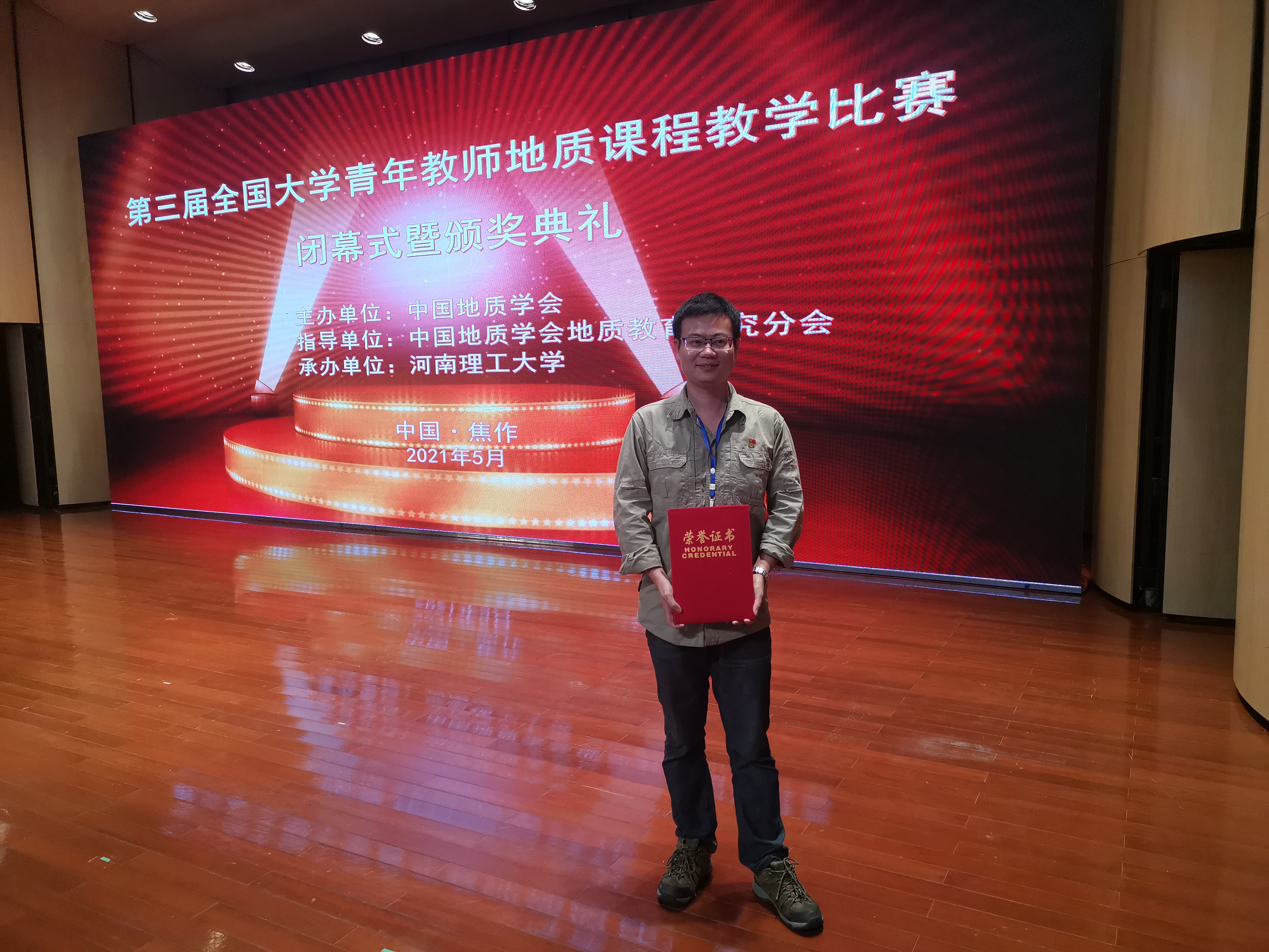 5月15至16日,由中国地质学会主办,中国地质学会地质教育研究分会、河南理工大学承办的第三届全国大学青年教师地质课程教学比赛在河南理工大学举行,代表太阳集团tcy8722参赛的我院教师林木森表现优异,荣获一等奖,实现了我院教师在此项赛事中的突破,为我院争得了荣誉。我校亦获评“优秀组织奖”。