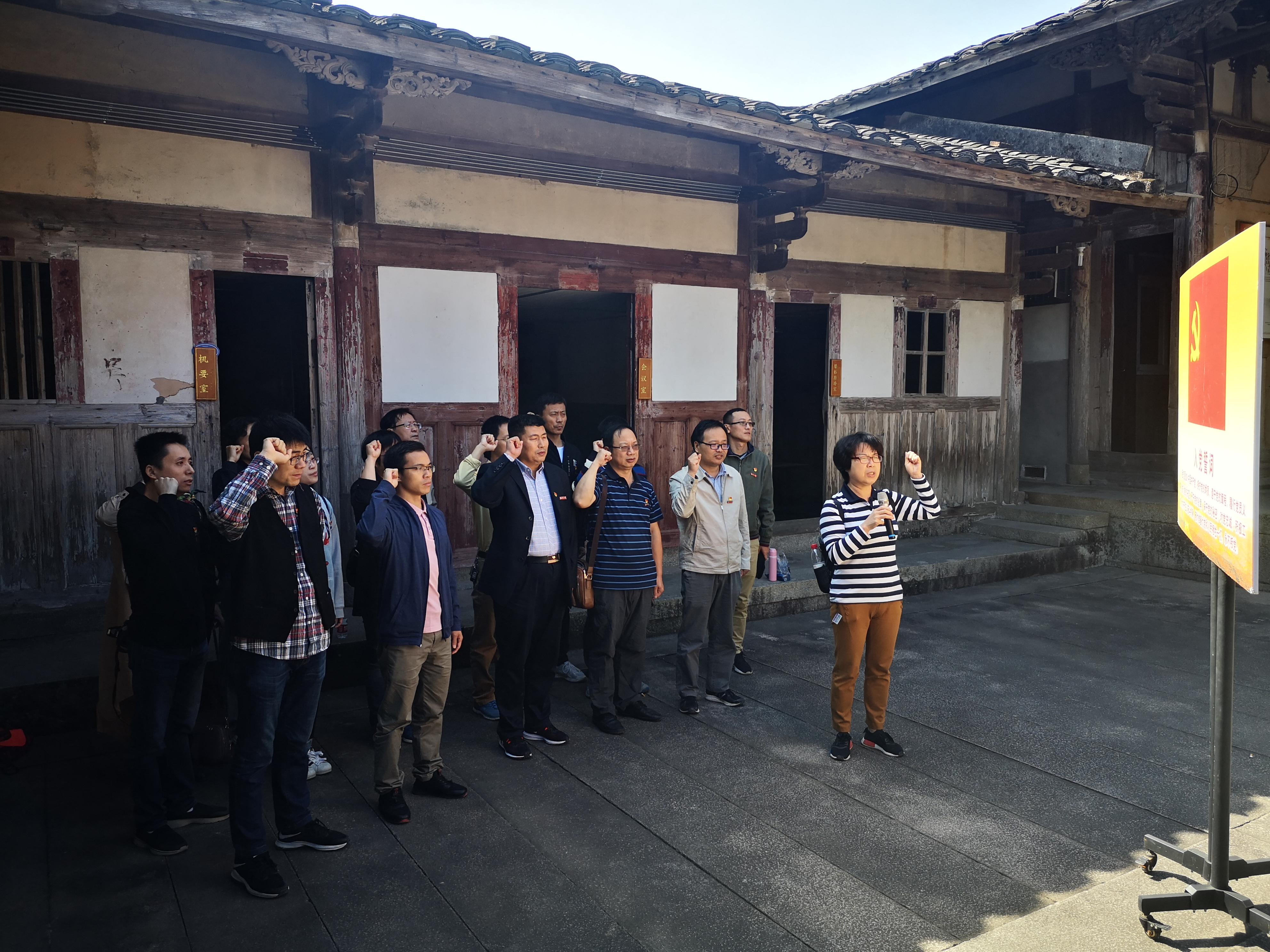 学院党员先到位于百丈村的中国工农红军北上抗日先遣队指挥部旧址所在地。在这里,大家了解了寻淮州、任铁锋以及连、罗党政军领导人粟裕、叶如针、杨采衡、张瑞财等人部署闽东武装斗争、安置红军500多名伤病员及决定攻打罗源城等革命事迹,并在党委书记徐雪玉的带领下重温了入党誓词。