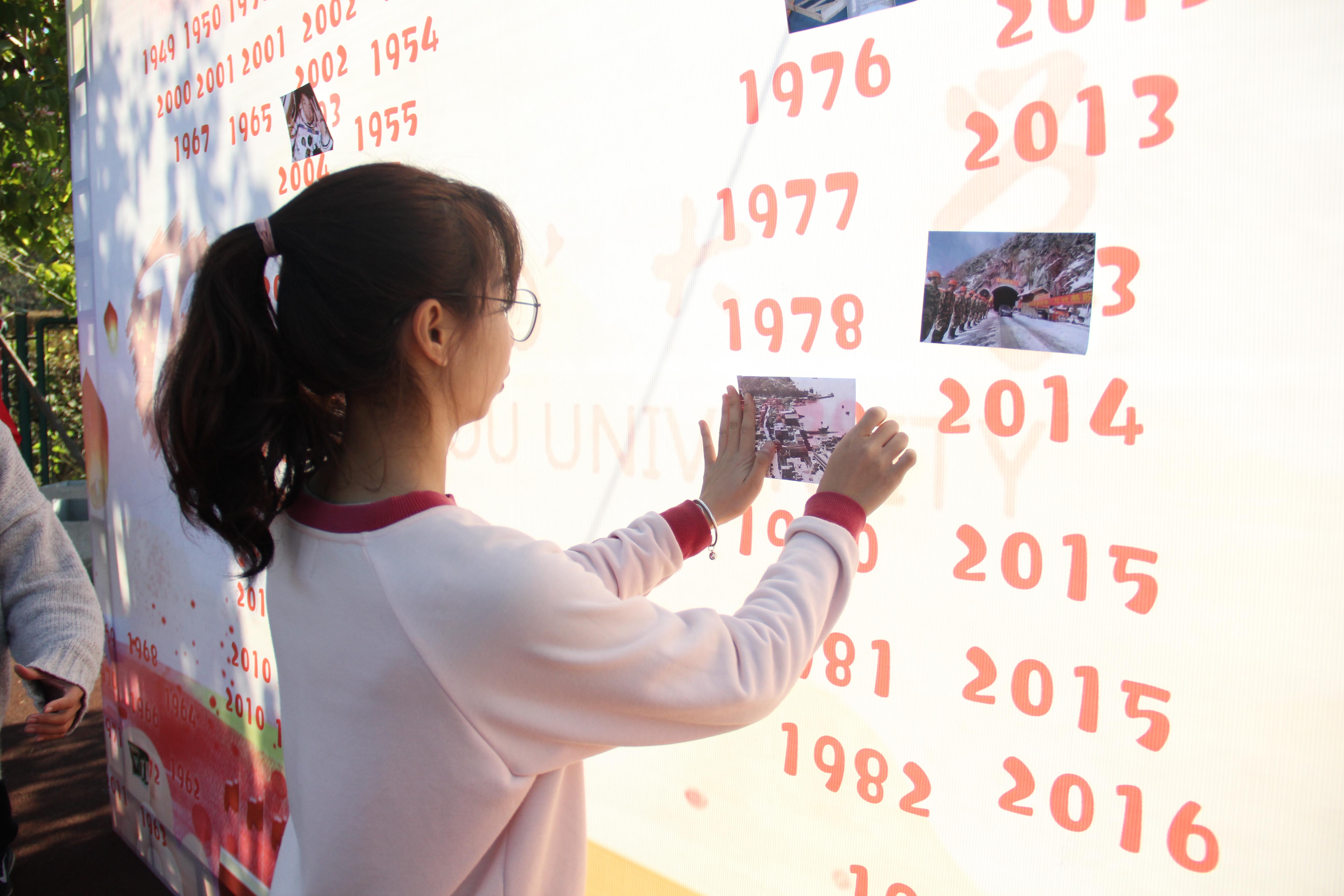 本次比赛的范围涵盖了学校的每一个角落,参赛队伍需要通过主办方提供的校园鸟瞰图和GPS定位仪寻找相应坐标点,并通过回答关于学习新思想、感悟新中国成立70年来的巨大变化以及12.9爱国精神等方面的题目和完成小游戏的方式获取路线的下一个坐标点信息。此外,参赛队伍还共同完成了袋鼠跳、“摸石过河”以及合力书写毛笔字“中国”等趣味游戏。主办方通过寓教于乐、亲身体验的方式,将新中国成立70周年的巨大变化巧妙地融入比赛中,参赛队伍还可以拿到不同年份的历史事件照片并张贴在“年份墙”上,于潜移默化中感受到新中国成立70年来的家国变化。最后,主办方通过参赛者的比赛时长和路线准确度确定队伍得分结果。