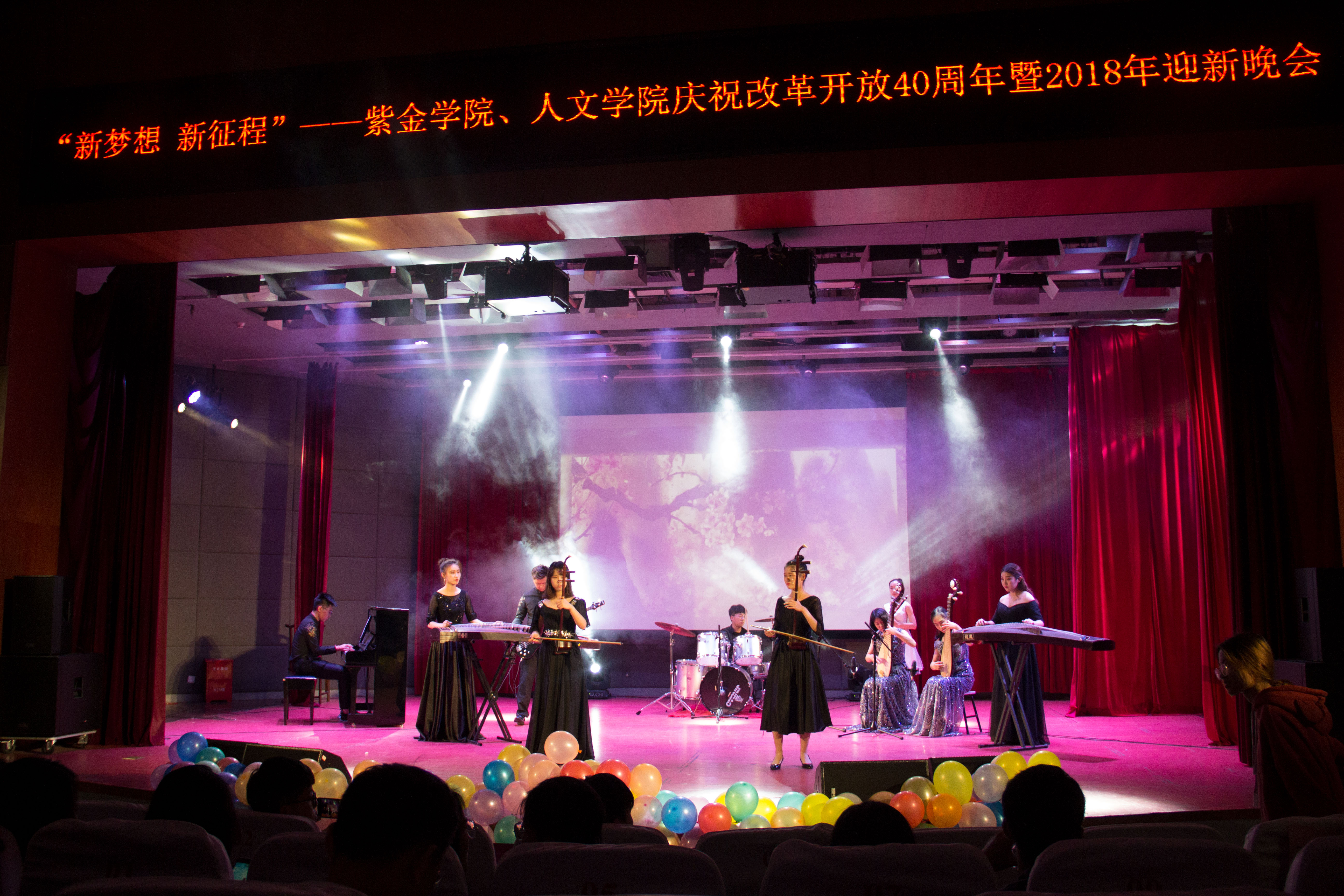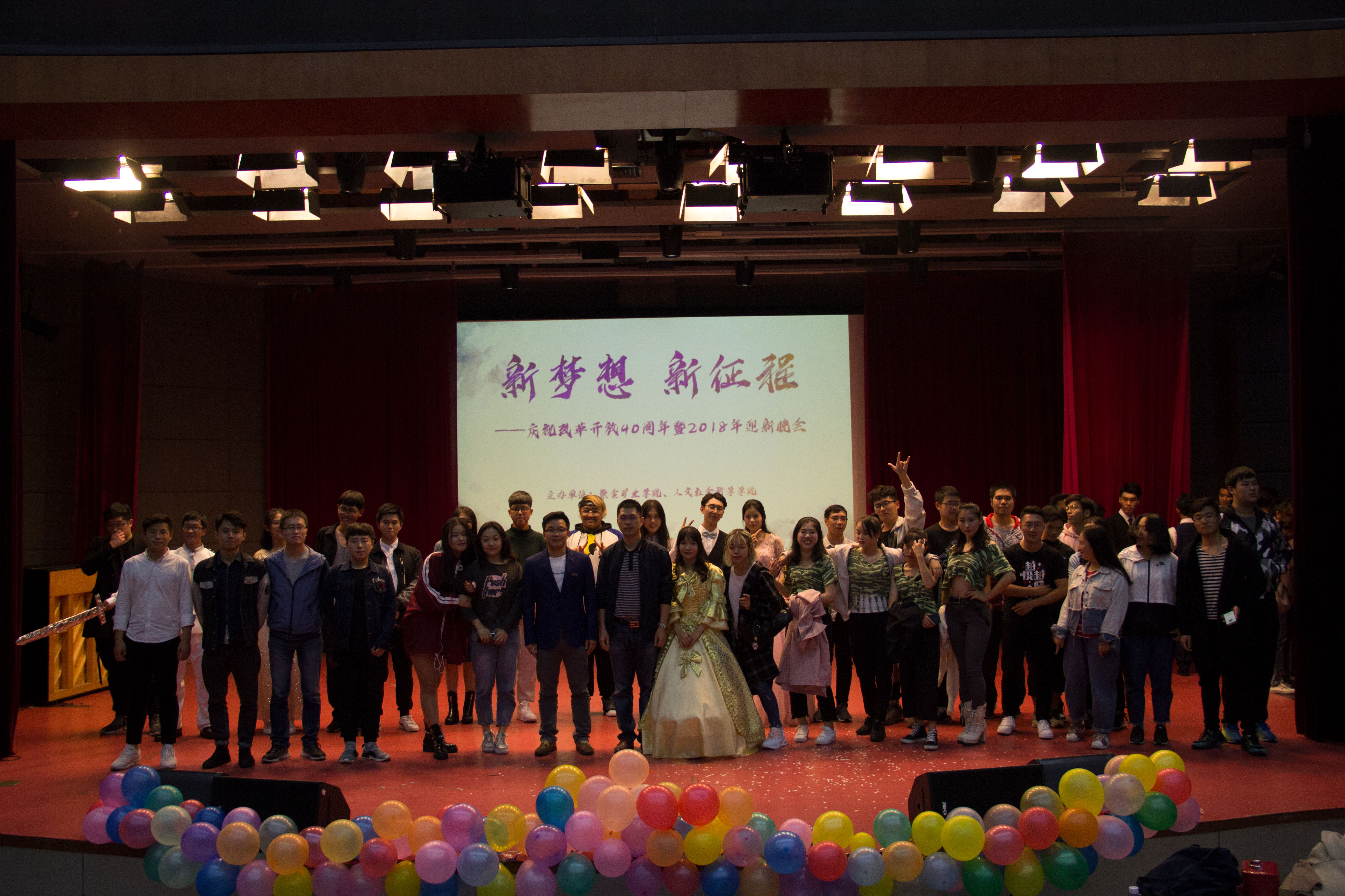 11月18日晚,紫金学院、人文学院庆祝改革开放40周年暨2018级迎新晚会在图书馆博学厅隆重举行,院党委副书记郑寿、团委书记李金土出席晚会。