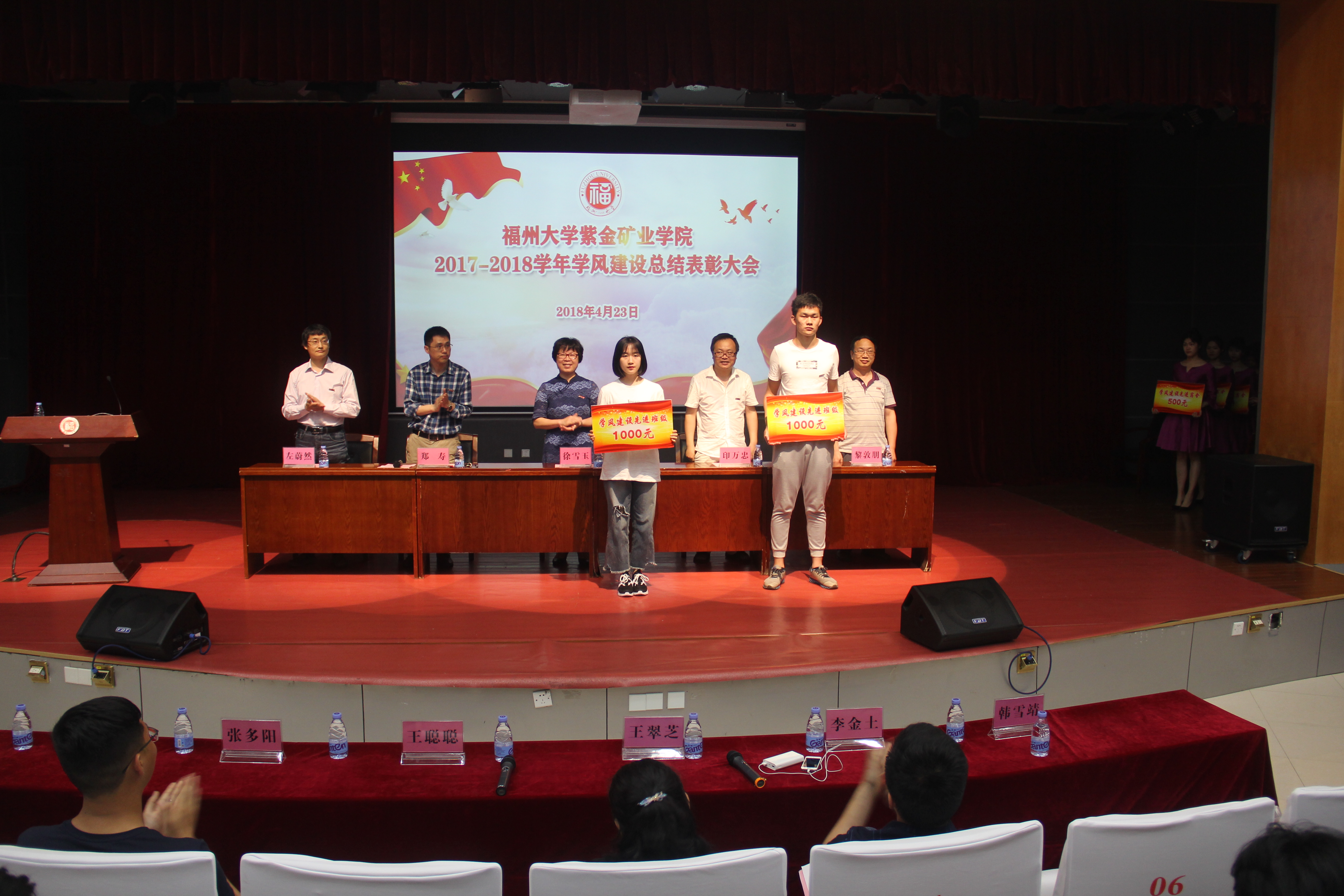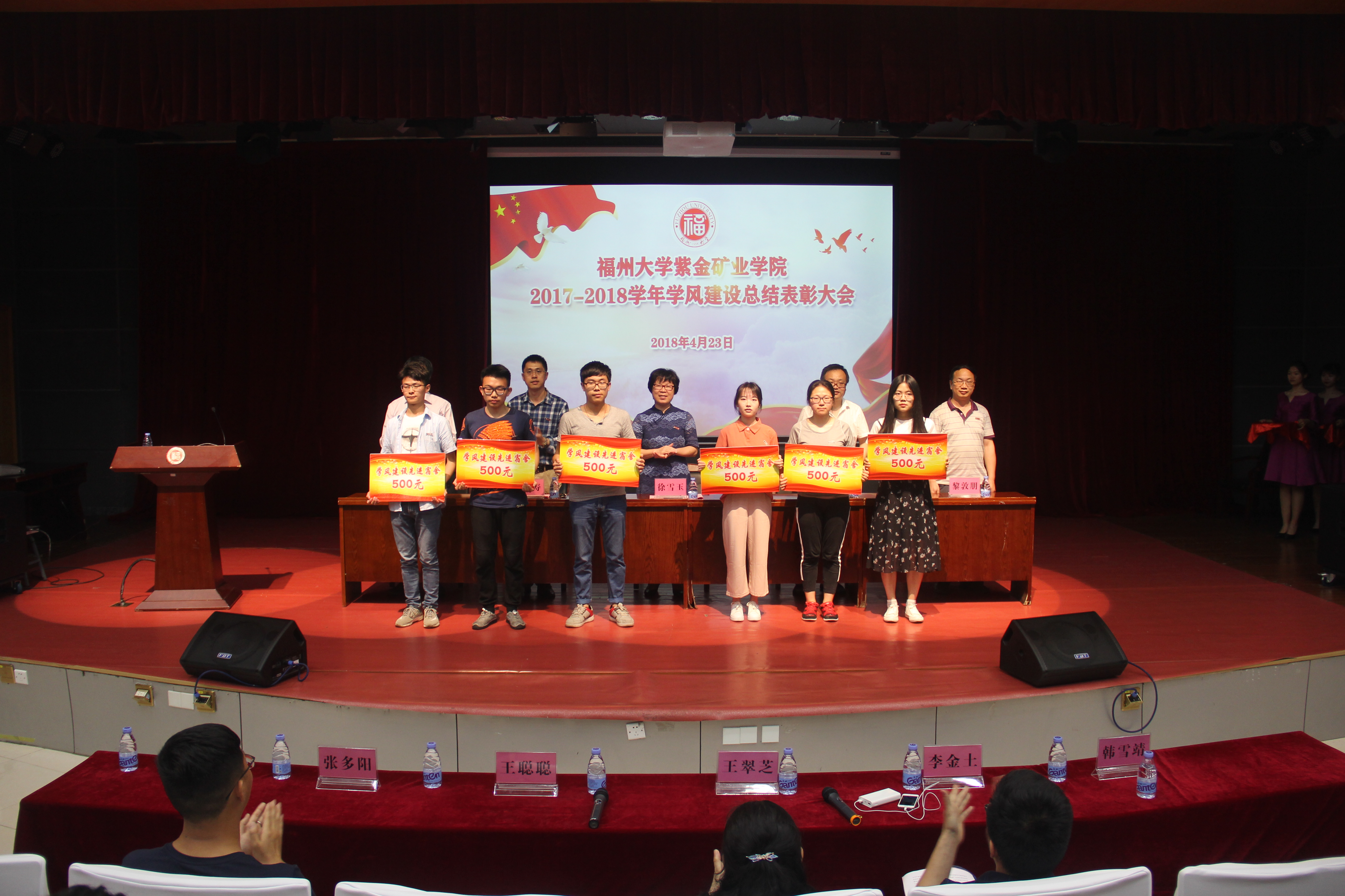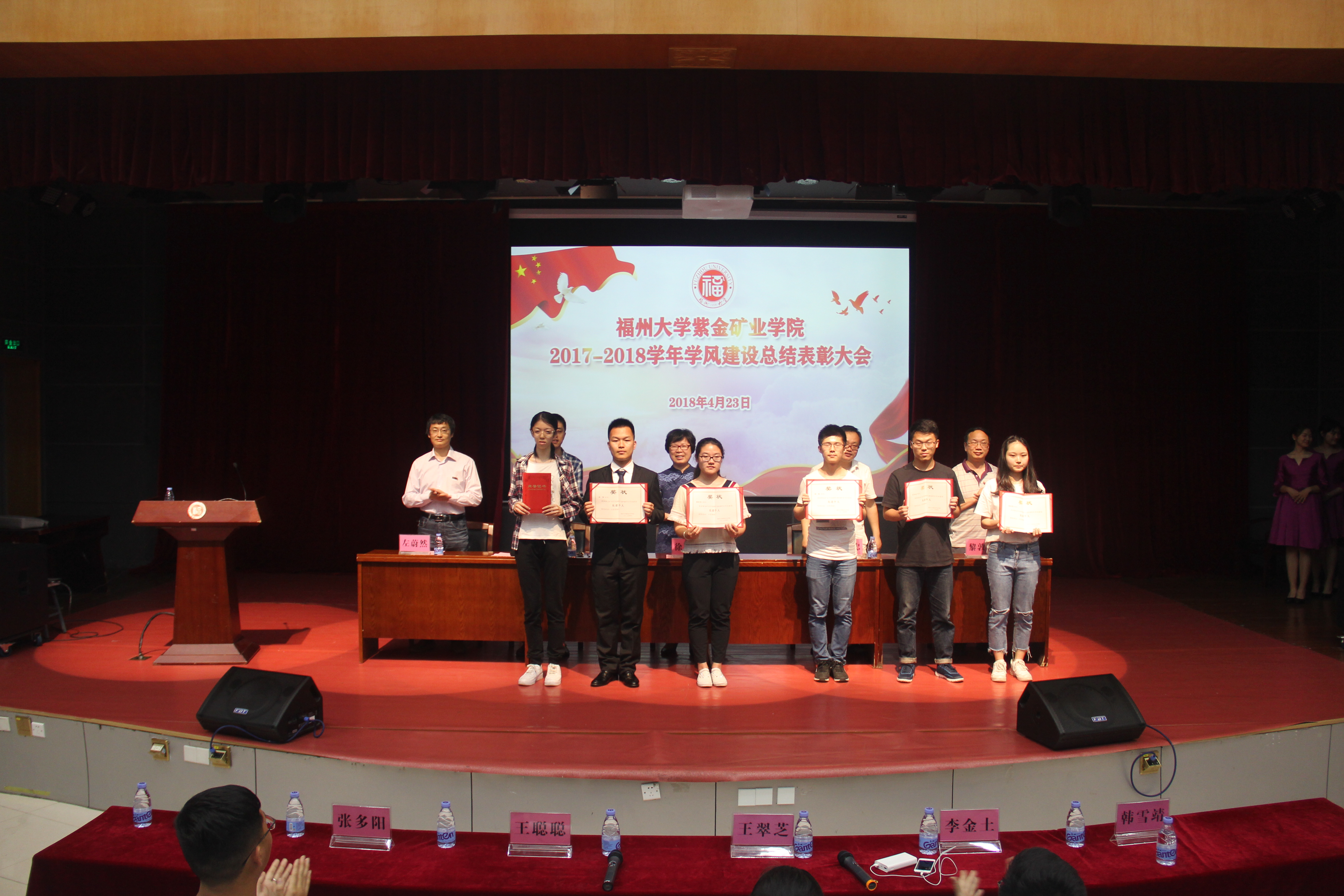 2018年4月23日晚,紫金矿业学院2017-2018学年学风建设总结表彰大会在图书馆明德厅举行,对一年来在我院学风建设工作中涌现出的先进班级、宿舍及个人进行表彰。出席大会的领导及老师有紫金矿业学院党委徐雪玉书记、院长印万忠教授、党委郑寿副书记、副院长黎敦朋教授、院长助理左蔚然老师以及各年级辅导员。大会由郑寿副书记主持。