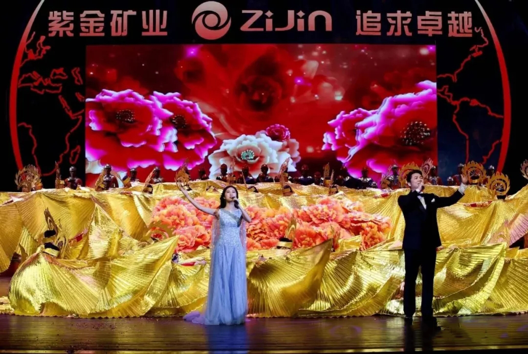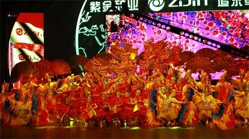 时光荏苒,岁月如梭,十年只是历史长河中的一刹那,却是那么的波澜壮阔。十年,给 我们留下了宝贵的财富;十年,给我们留下了厚重的责任;十年,见证了昨日的栉风沐雨; 十年,守望着明天的灿烂辉煌。为了庆祝紫金矿业集团H、A股上市15、10周年,4月24日晚,紫金矿业公司在上杭县客家缘文化中心举办了“开启新征程,紫金续华章”暨庆祝五一职工文艺联欢晚会。上杭县县委书记付藏荣,上杭县县长王波,紫金矿业集团董事长陈景河先生等各级单位领导参与了此次晚会。
