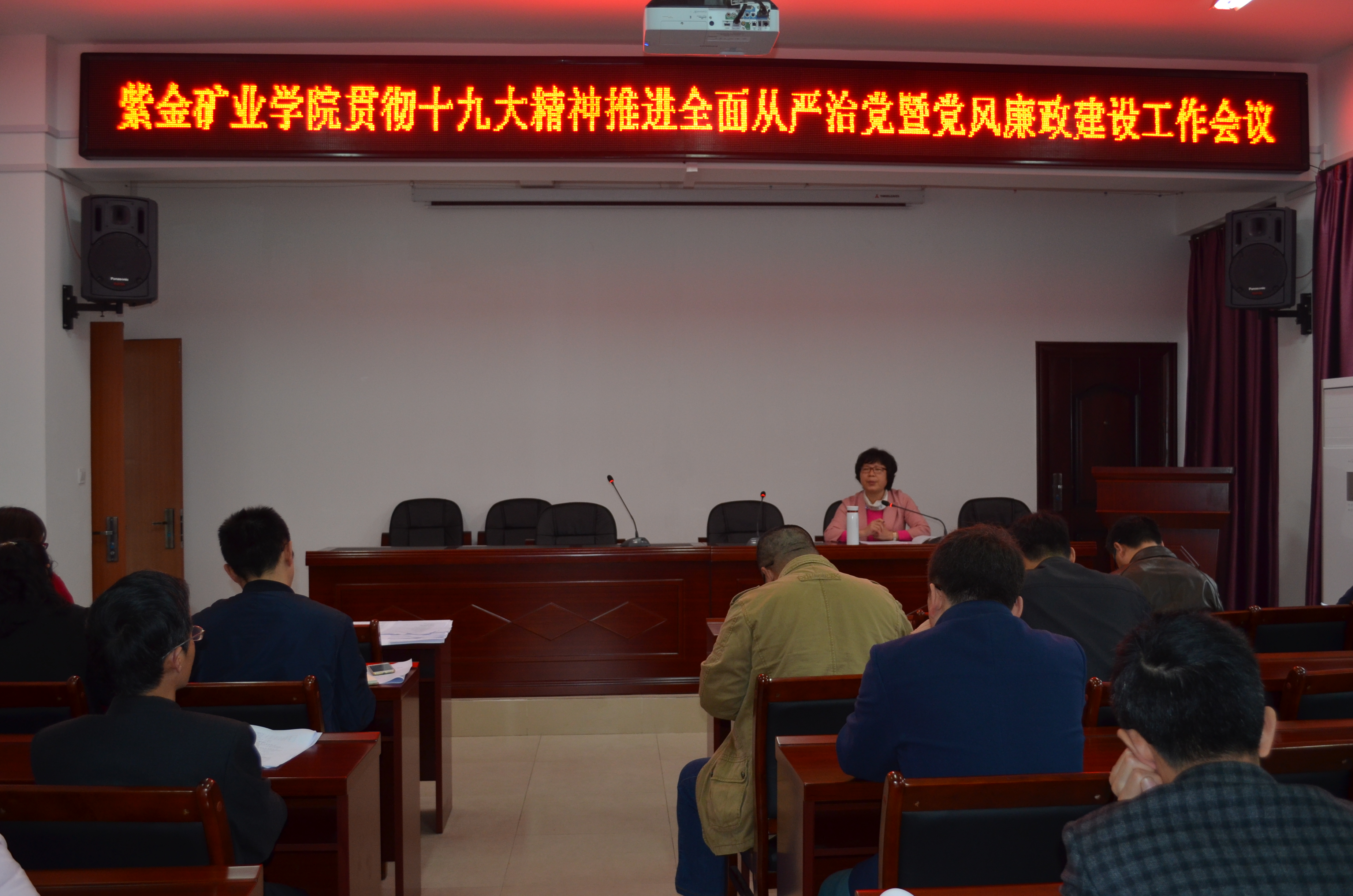 2018年3月15日下午,我院召开贯彻十九大精神推进全面从严治党暨党风廉政建设会议。学院全体在家教职工参加会议,会议由徐雪玉书记主持。