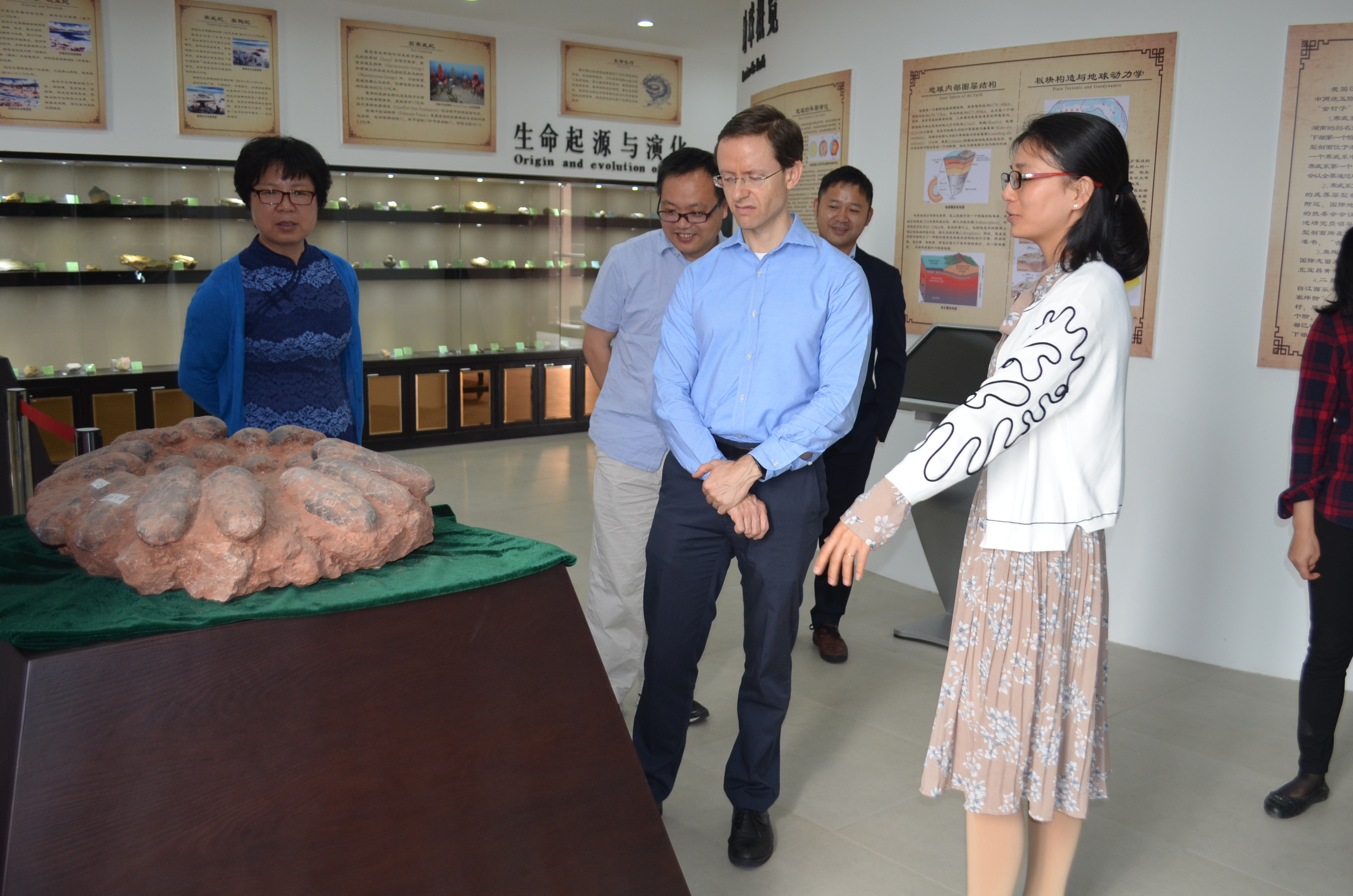 座谈会结束后,Bret Sutcliffe学院党委徐雪玉书记等领导的陪同下参观了地矿博物馆。印院长简要介绍了学院的办学历史和发展现状,并向客人介绍了校企合作办学的“紫金模式”及其优越性。Bret Sutcliffe充分肯定了我院的办学模式,并期待有机会再次访问我院。