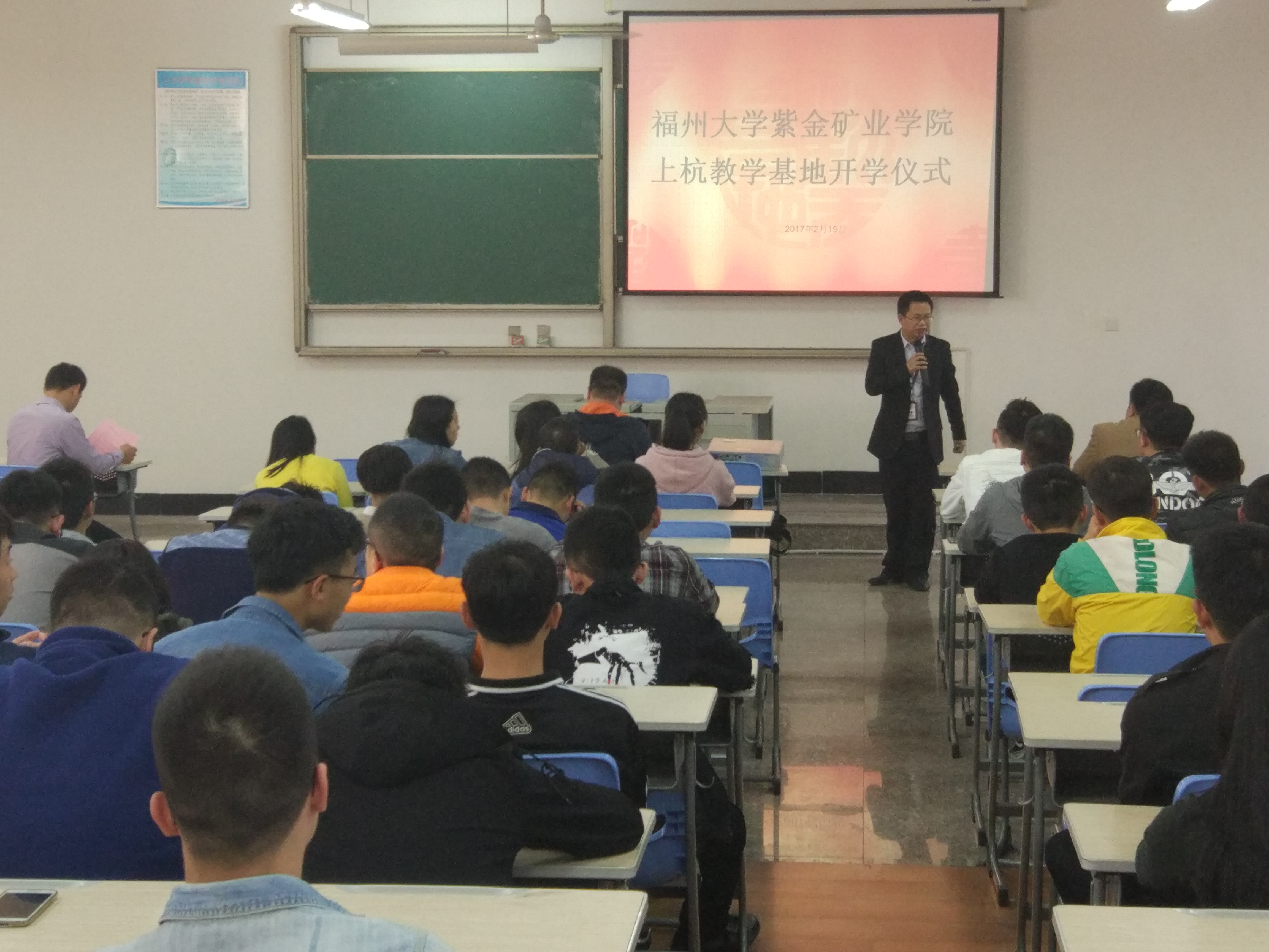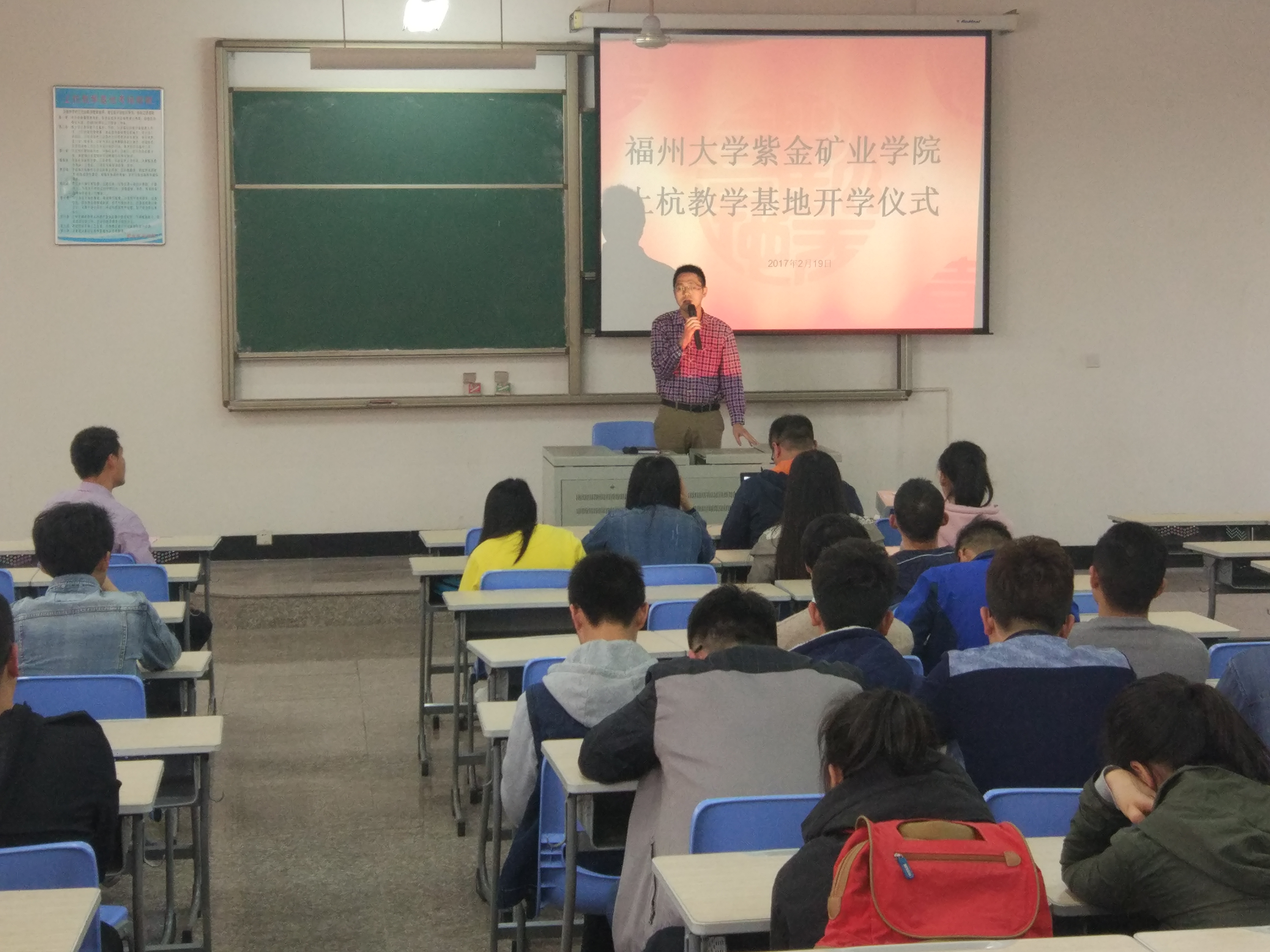 新的学期,开启新的希望,承载新的梦想。2017年2月19日下午,紫金矿业学院2014级上杭教学基地开学仪式在综合楼501举行。参加本次开学仪式的有院党委副书记郑寿,紫金矿业集团人力资源部综合培训处处长刘建兴,基地物业中心主任刘建能、学院企业工程型教师时明河以及学院老师谢其锋、胡维喜、迟晓鹏等。