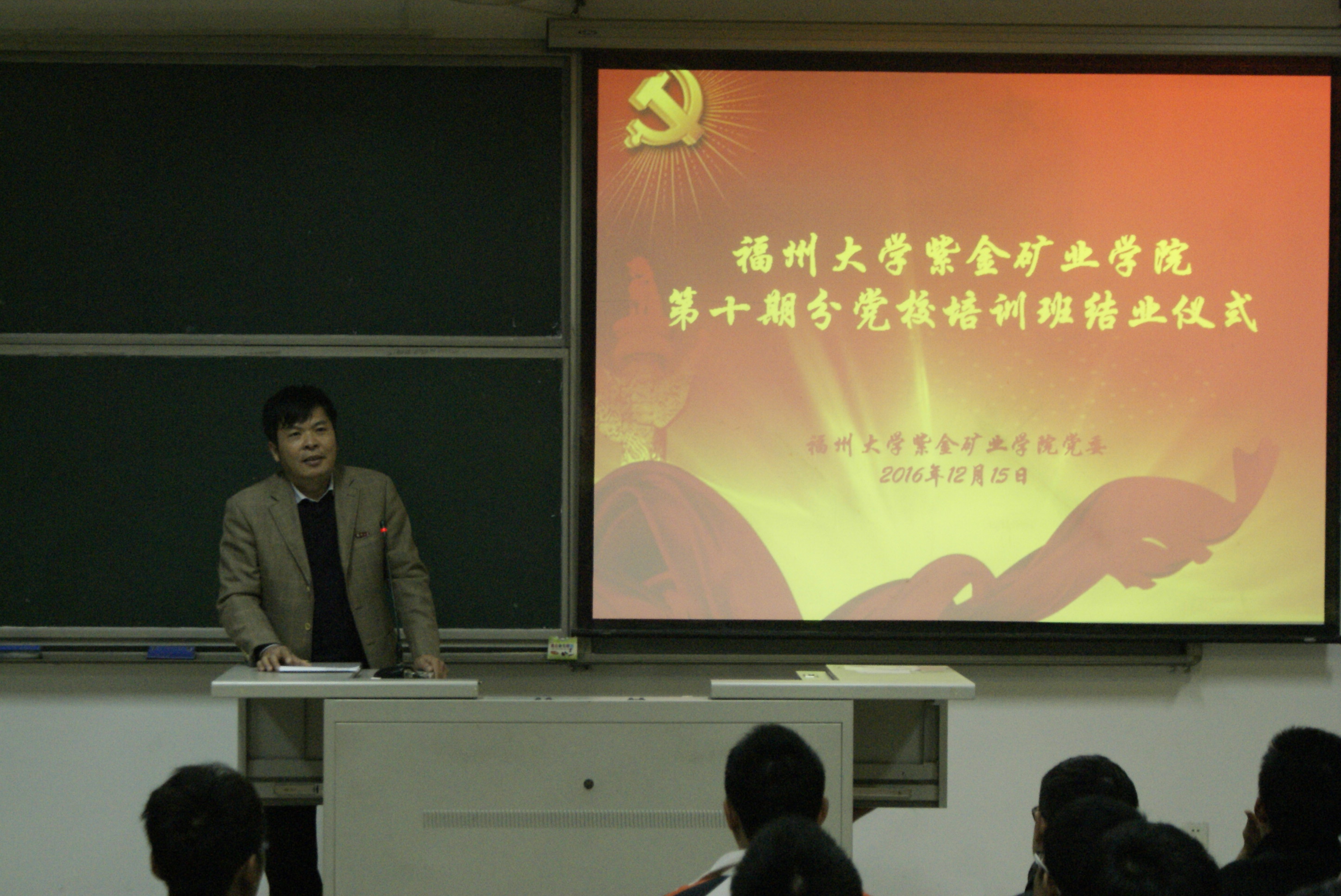 最后,黄培明书记作总结发言。他代表学院党委对顺利结业的学员表示祝贺,并对参与党校培训班相关工作的老师们表示感谢。同时,他结合“两学一做”和社会主义核心价观,对全体学员提出了新的希望和要求。他希望全体学员要进一步加强政治理论的学习,进一步坚定理想信念,通过自身不断地学习、实践,早日加入光荣的中国共产党。