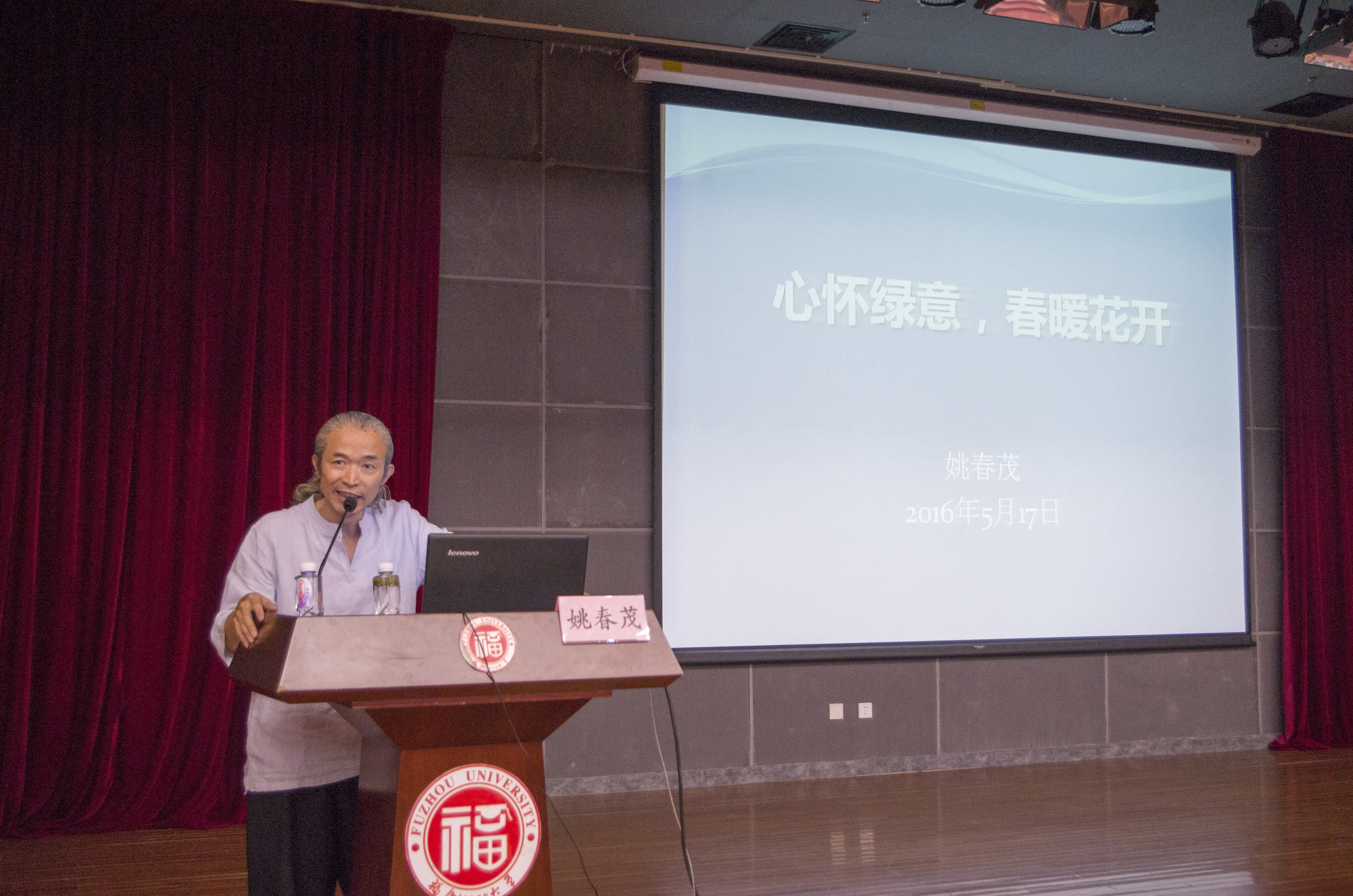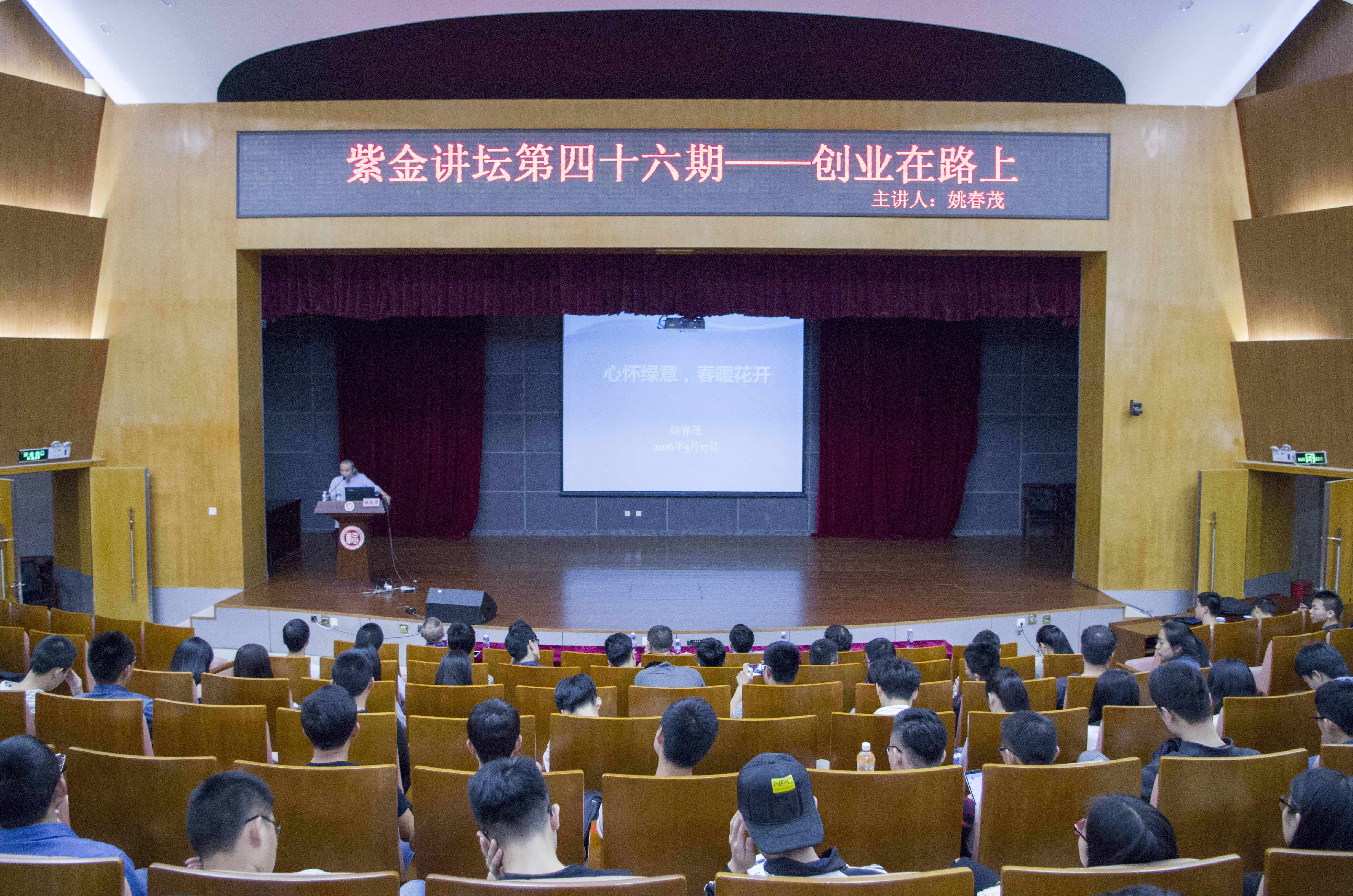 2016年5月18日晚,第46期紫金讲坛在图书馆明德厅顺利举行,本次讲坛主讲人为中国珠宝玉石首饰行业协会常务理事福建省宝玉协会副会长姚春茂教授,演讲的题为《创业在路上》。姚教授以“心怀绿意,春暖花开”为题,向大家展示了一个别开生面的报告会。本次会议由院党委副书记余飞主持,我院各系教师代表及二百余名学生参加了此次讲座。