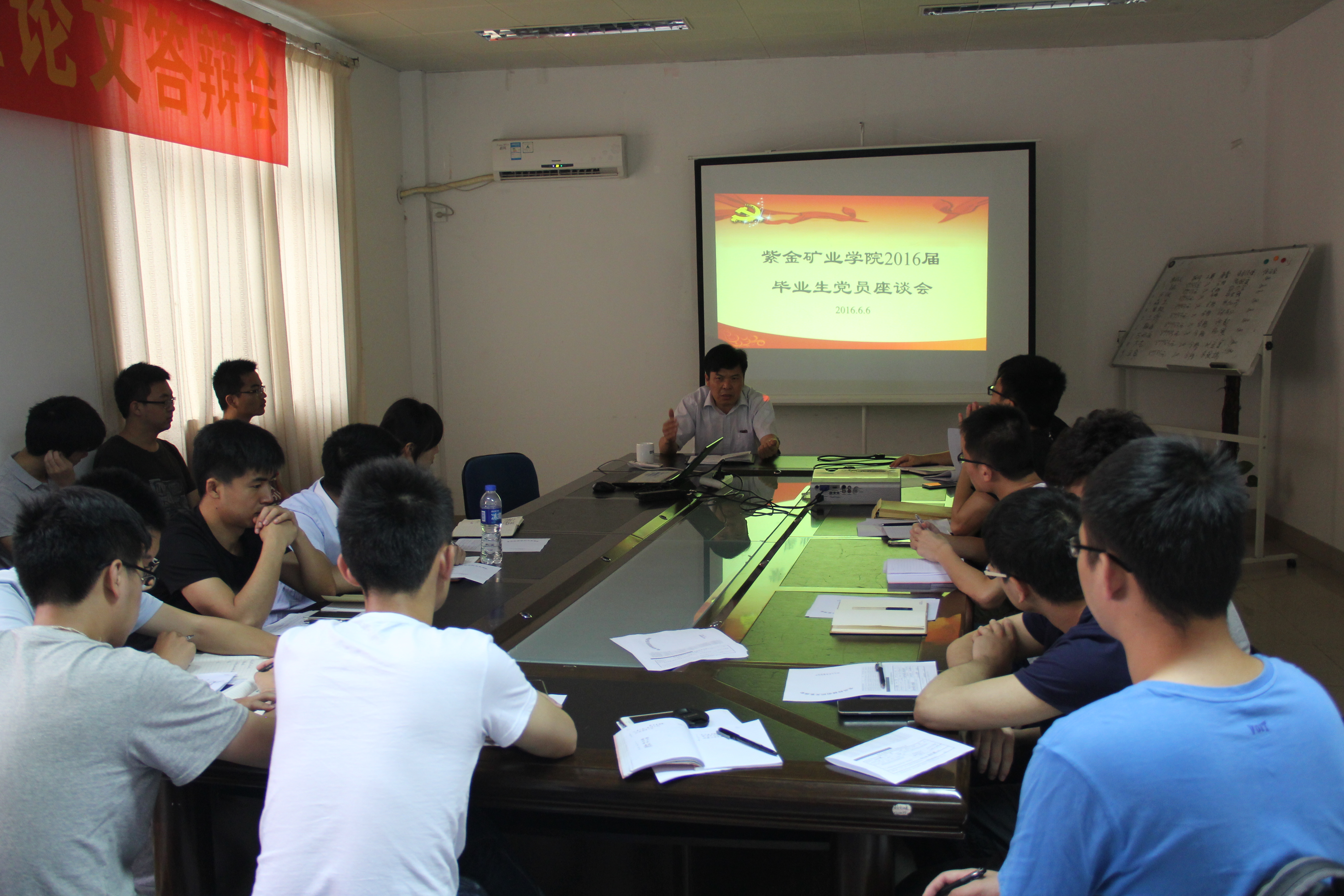 2016年6月6日下午,紫金矿业学院2016届毕业生党员座谈会在学院北206会议室举行。院党委黄培明书记、院党委秘书方友喜老师出席座谈会以及2016届全体毕业生党员参加了此次座谈。座谈会由毕业班辅导员翁惠玲老师主持。