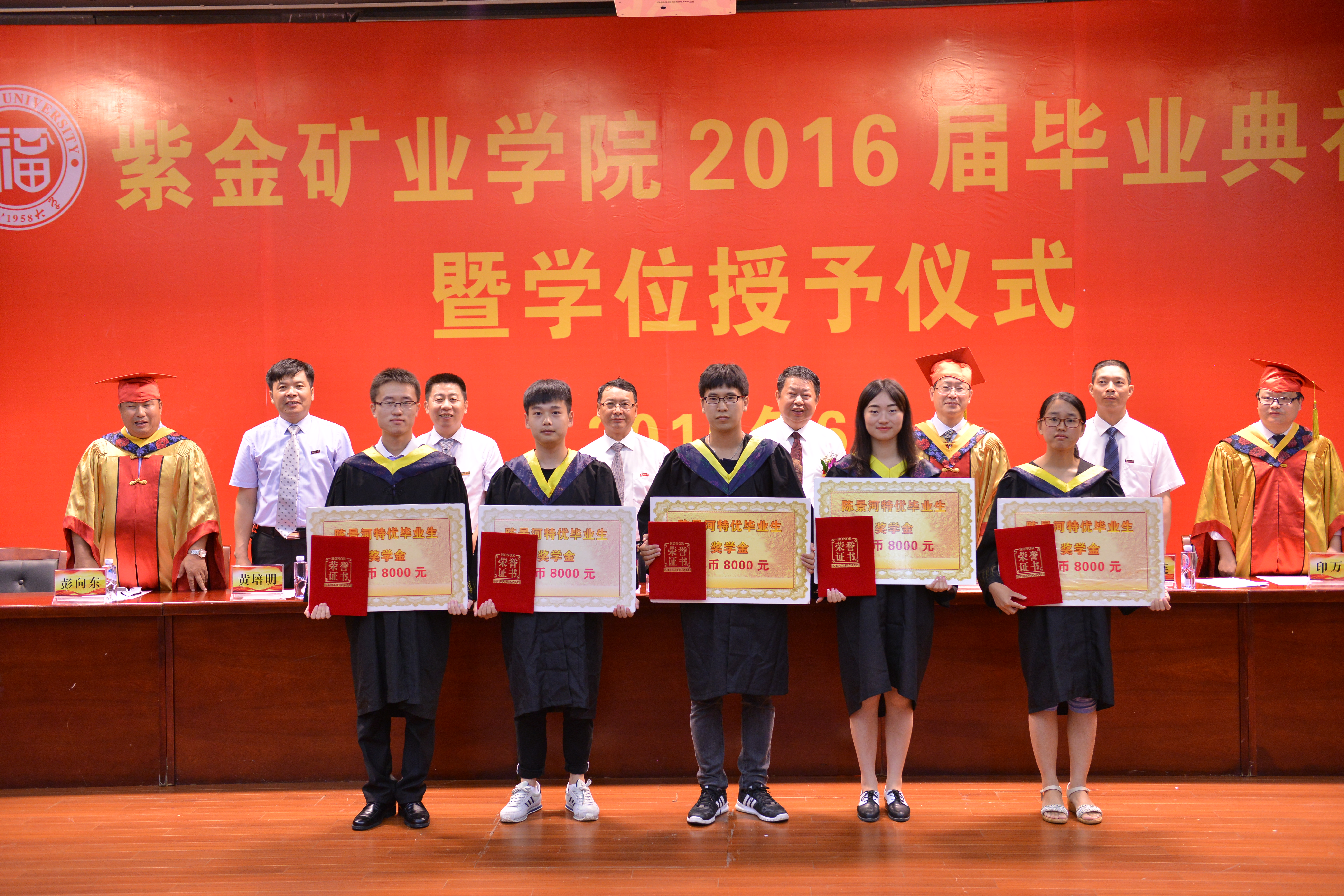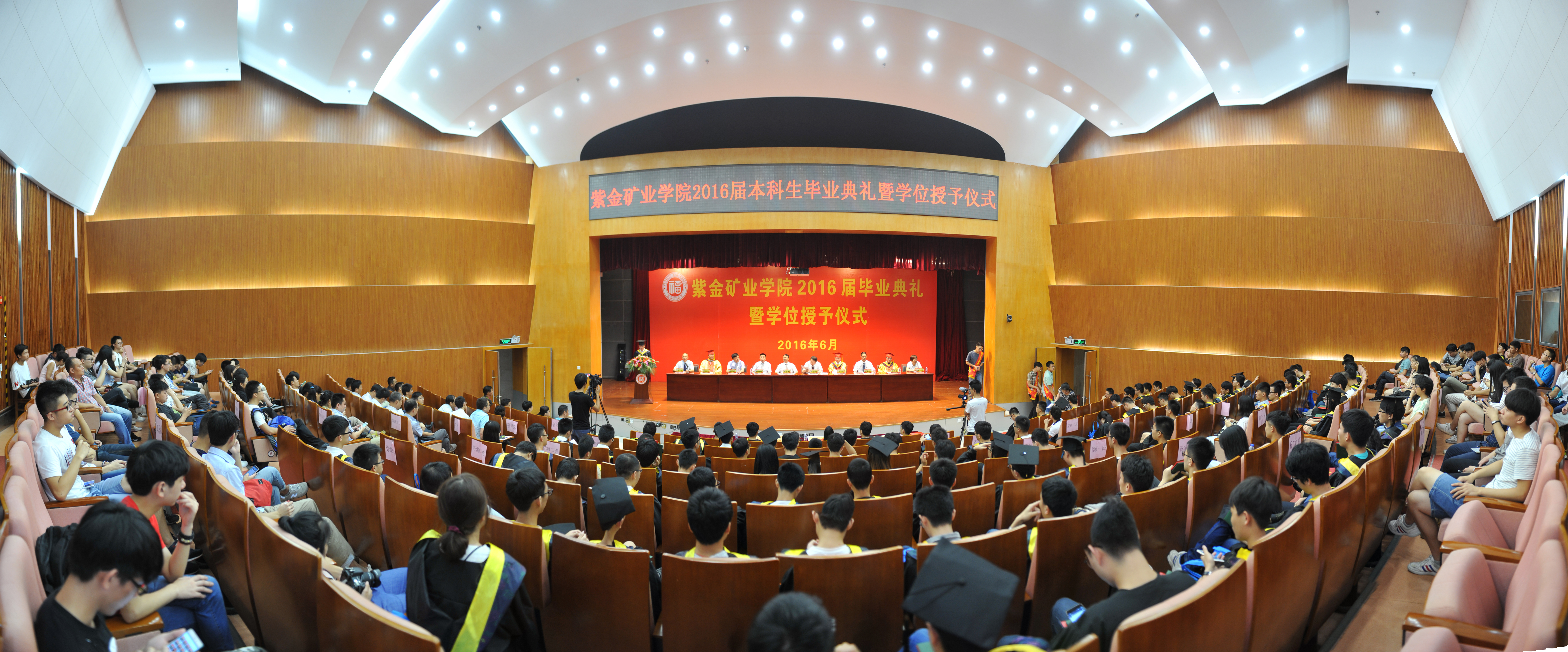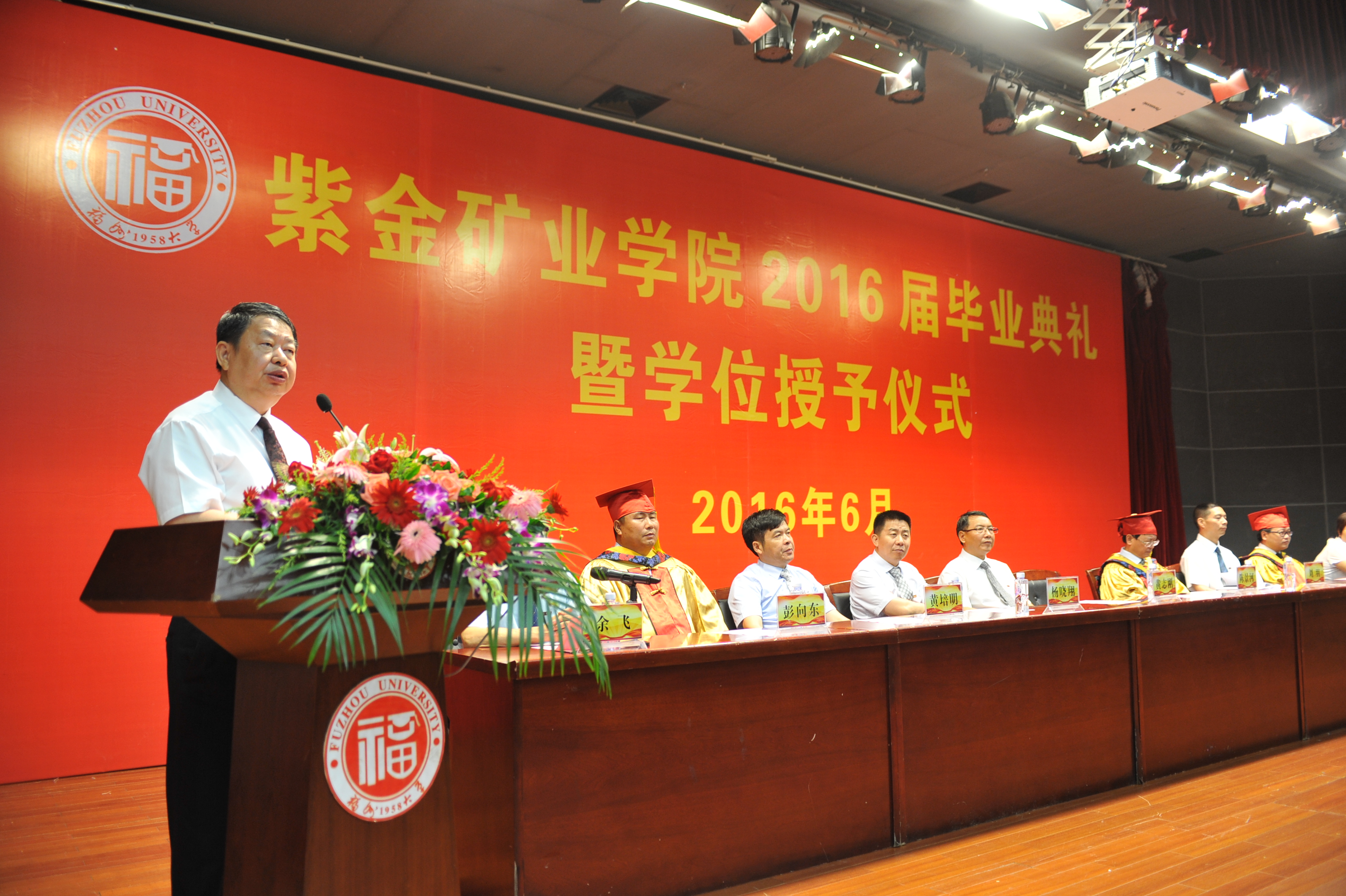 6月19日上午9时30分,紫金矿业学院2016届毕业典礼暨学位授予仪式在图书馆明德厅隆重举行。出席典礼的领导有:紫金矿业集团股份有限公司董事长、学院理事会理事长陈景河先生;太阳集团tcy8722党委常委、副校长、学院理事会副理事长黄志刚教授;太阳集团tcy8722教务处处长、学院理事会理事杨晓翔教授;紫金矿业集团人力资源部总经理、学院理事会理事童胜连先生;紫金矿业集团股份有限公司董事办公室主任郑友诚先生;学院院长刘羽教授;学院党委黄培明书记;彭向东副院长;印万忠副院长;学院理事会理事、院长助理谢忠兰女士。2016届全体毕业生及学院全体教职工、部分学生家长参加了本次毕业典礼,学院党委副书记余飞主持活动。