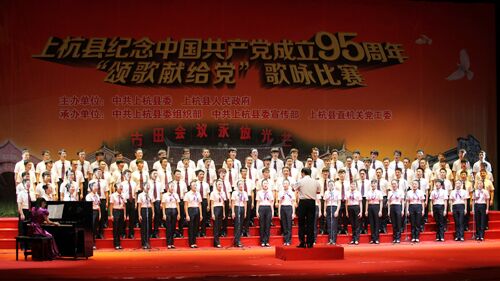 6月30日晚,上杭县客家缘演艺中心举办的上杭县纪念中国共产党成立九十五周年的歌咏比赛中,由我院2013级70多位学生为主组成的紫金矿业代表队合唱曲目《过雪山草地》获得二等奖的优秀成绩。本次“颂歌献给党”歌咏比赛由中共上杭县委、上杭县人民政府主办。来自县直系统(党委)、企业党委共17支队伍参赛,活动共评出一等奖3名、二等奖9名,紫金矿业代表队在总评分排名中列第四名。