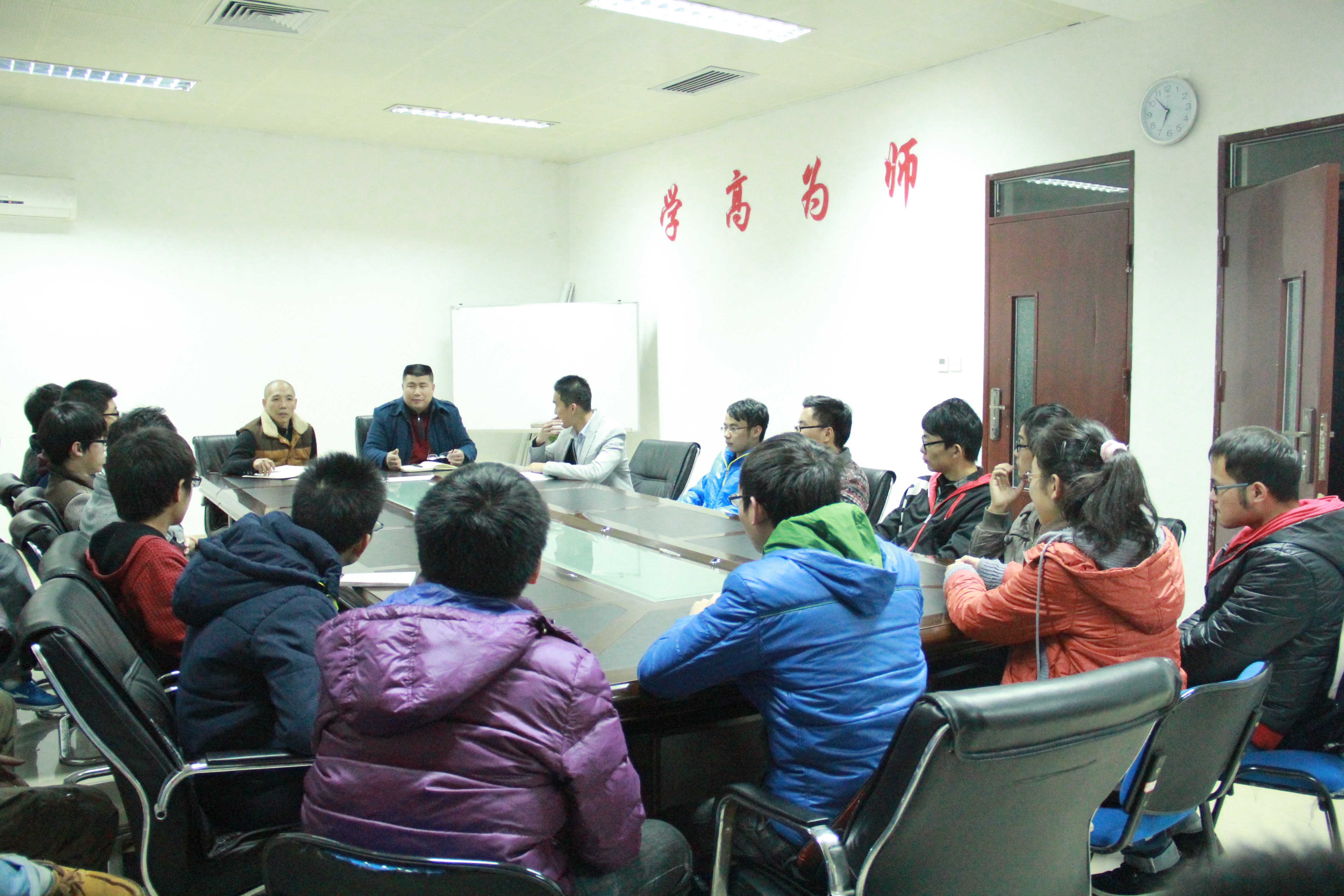 随着2015年研究生入学考试的临近,为了鼓励考研同学在最后的冲刺阶段保持学习热情,增强考研信心,12月24日晚,我院2015届毕业生考研动员大会在学院北206会议室召开。院党委副书记余飞和副院长彭向东出席会议,活动由毕业班辅导员范新垲主持,2011级30余名参考学生参加。