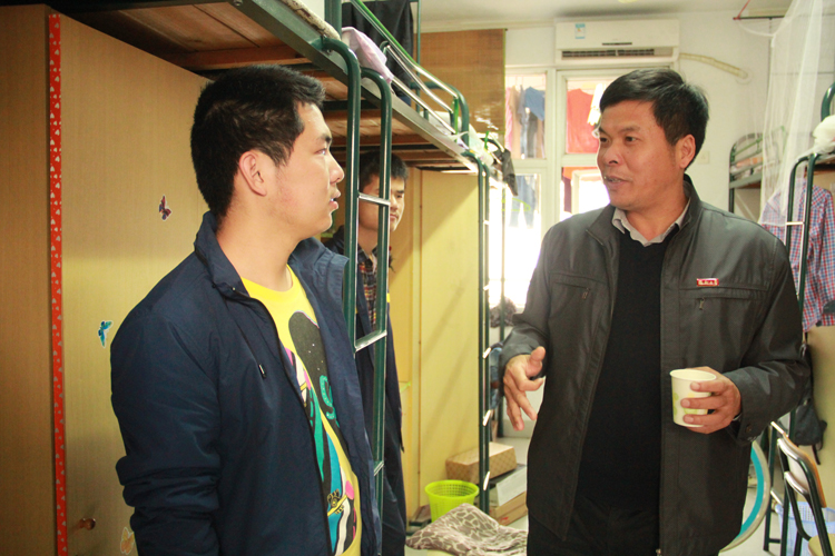 为贯彻落实中央关于深入开展党的群众路线教育实践活动精神,进一步做好领导班子联系群众工作,4月14日下午,院党委黄培明书记深入我院学生公寓,与同学们零距离交谈。 下午4点,黄培明书记走进学生寝室,询问了同学们日常生活和专业学习情况,针对同学们关心的与澳大利亚科廷大学合作的事项进行说明,鼓励同学们利用课余时间抓紧通过雅思英语考试,并表示学院会为同学们的追梦之路提供力所能及的帮助。另外,黄培明书记还强调学生工作应重点抓文明宿舍建设,评选学习优秀、工作突出的宿舍,树典型,促进形成良好的院风。学院对学风建设更多的是引导,引出学生对未来的思考,促进学生的学习热情。最后黄培明书记结合这次群众路线教育的主题,勉励同学们在大学期间要努力提高自身综合素质和能力,刻苦学习专业本领,为成为优秀的矿业人才不懈努力,同时也为学院的将来添上浓重的一笔。 本次书记进宿舍活动,紧紧结合学院党的群众路线教育实践活动精神,不但拉近了学院领导与同学们的距离,也让学院领导能零距离聆听了同学们的心声,为同学们解惑。据悉本次活动得到了同学们的一致好评,增强了同学们对所学专业的认同感,坚定了自己的理想。(连文宇 供稿 摄影)