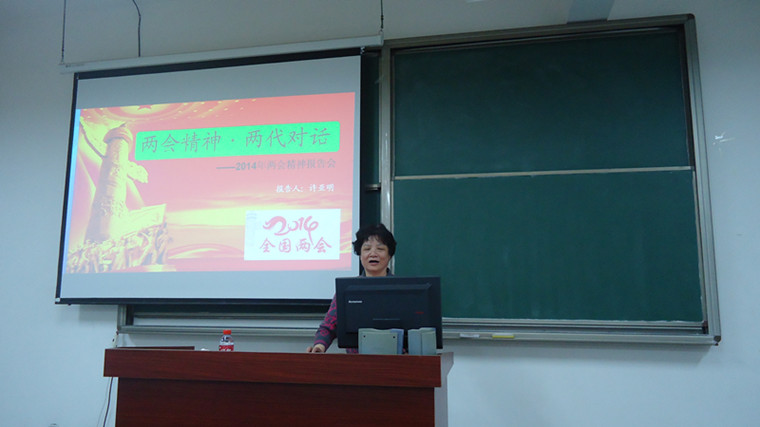 余飞副书记首先代表学院党委欢迎各位校关工委老同志的到来,并向各位老同志简要介绍了上杭教学基地的基本情况以及一院两区的办学模式特点。校关工委主任许亚明老师就学校正在开展的第二批群众路线教育实践活动的内容要求和意义给学生党员们做了说明。座谈会在融洽的气氛中进行,学生党员与关工委老同志就人生理想信念、就业发展、办学特色以及同学们的学习和生活等情况广泛交流。座谈中,关工委老同志非常关心学生的成长,针对学生提出的困惑,结合个人的经历和地矿专业特点,帮助学生们解惑,并鼓励同学们要树立艰苦奋斗、勇于创新的精神,做到心怀理想、脚踏实地、潜心学习,掌握好专业知识,练就过硬的专业本领,为学校和学院建设添砖加瓦。全场座谈会气氛轻松活跃,持续一个半小时后。 晚上7时,校关工委主任许亚明老师还专门为在基地的全体学生举行了一场“两会精神,两代对话”的精彩报告会。