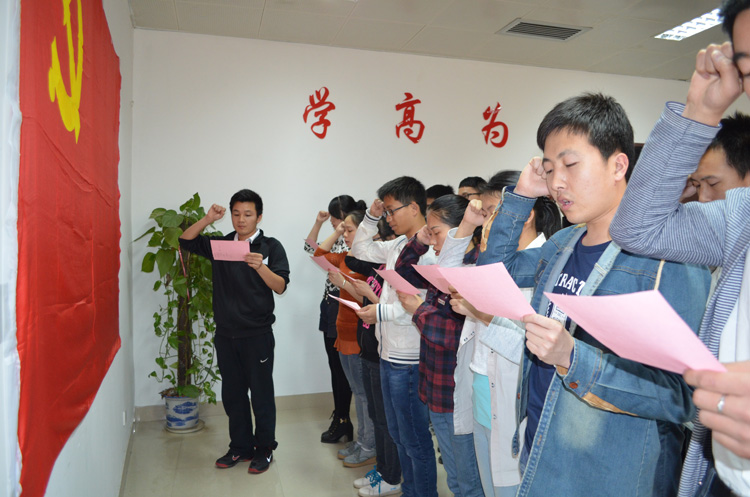 5月7日下午,我院学生党支部组织全体毕业班新党员在学院北206会议室召开入党宣誓大会。出席大会的有院党委黄培明书记、党委委员方友喜、2010级辅导员李金土及全体毕业班党员。会议由学生党支部书记翁惠玲老师主持。 宣誓大会在庄严的国际歌中拉开序幕。李金土老师领誓,16名毕业班新党员在党旗下庄严宣誓。之后,黄培明书记做讲话,他首先为全体毕业班党员解读学习党的群众路线教育实践活动精神,并进行下一阶段工作布置,要求毕业班党支部根据实际情况开展民主生活会,结合毕业答辩和离校工作做到文明离校。然后黄书记对在座毕业班党员提出了几点希望,希望学生党员牢记入党誓词,坚定理想信念;牢记宗旨,树立为人民服务思想;在毕业答辩环节中发挥党员的先锋模范作用,争取毕业论文质量较往届有所超越;自觉遵守党纪党规,严于律己,清正廉洁。 最后,院党委委员方友喜就毕业生党组织关系转移注意事项进行讲解,希望全体毕业班党员务必严守规定,做好毕业前党组织关系转移工作,避免成为“口袋党员”。会议在热烈的气氛中圆满结束。(翁惠玲供稿)