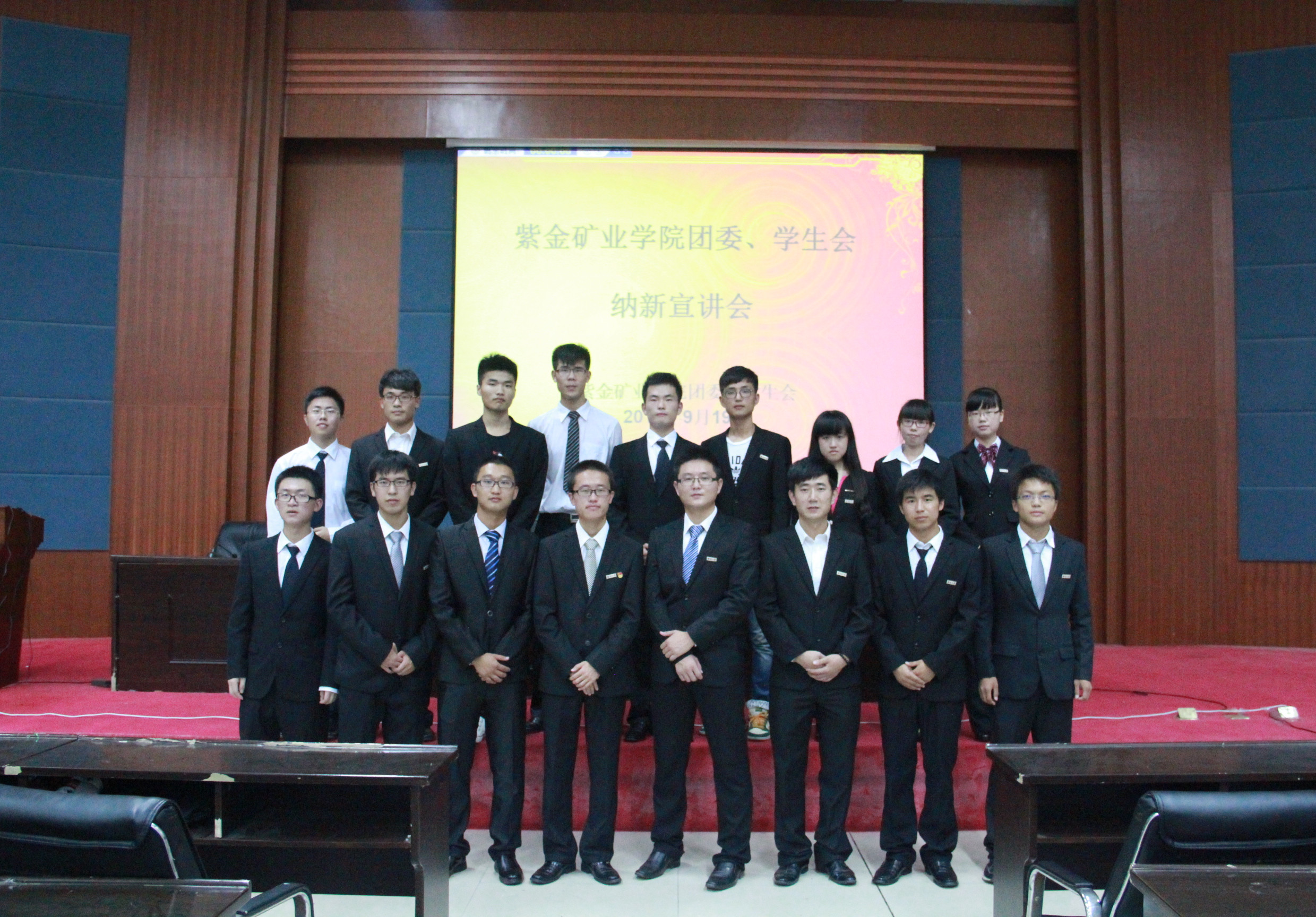 2014年9月19日晚,伴着夏夜的清风,伴着美丽的晚霞,在我院学生团委副书记韩雪靖同学的主持下,太阳集团tcy8722紫金矿业学院团委学生会2014年度纳新宣讲会,于在紫金学院三楼学术报告厅拉开了帷幕。 宣讲会伊始,我院学生会主席邓鹏同学对紫金矿业学院学生会做了简要的介绍,让同学们对我院学生会有了全面的了解。紧接着,我院学生会体育部、宣传部、文化部、实践部、职业发展与创业协会、心理发展协会、组织部、女生部、勤工部、社团联合部、办公室、学术部等12个部门的部长依次上台发表了精彩的演讲,赢得了现场阵阵掌声。幽默有趣的宣传部、友爱贴心的心理发展协会、忙碌高效的办公室、专注学业的学术部……12个部门风格各异,12位部长各显神通。部长们用于展示部门风采的PPT课件与视频,深入浅出地让同学们对我院学生会各个部门有了更深入的认识。部长们清一色的正装出席,更成为了会场一道别样美丽的风景线。 宣讲会结束后,许多14级的同学纷纷留下来,向学生会各部门部长和主席团成员咨询我院学生会纳新的详细信息。据悉,我院学生会将在9月21日晚在学院楼三楼学术报告厅举办纳新面试。(陈柳潇 供稿)