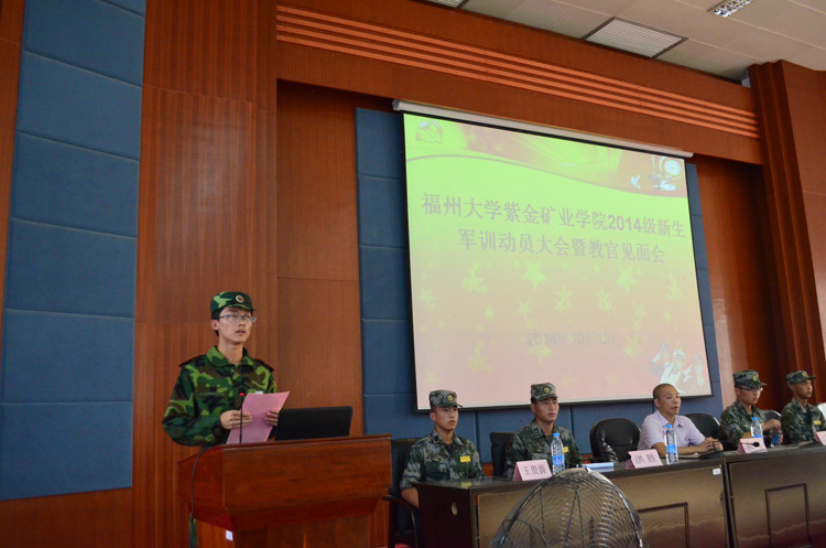10月12日下午四点,太阳集团tcy8722紫金矿业学院2014年新生军训动员大会暨教官见面会在三楼学术报告厅举行,院党委副书记余飞、军训团三营营长上官栋梁、三营六连全体教官及2014级全体参训学生参加了动员会。会议由院团委书记兼2014级新生辅导员李金土主持。 大会在庄严的国歌中拉开序幕。接着,上官栋梁营长讲话,他对全体参训学生提出了军训的要求,希望同学们增强国防意识,牢记历史使命,奋发有为;增强纪律意识,严格要求自己,健康成长;增强文明意识,养成良好习惯,打牢基础。随后,余飞副书记做作动员讲话,与同学们分享了他对军训的理解,提出了对本次军训的要求和展望:向军人学习,培养吃苦耐劳、团结一致的精神,努力为集体争光。最后,2014级采矿工程一班的周振泽同学作为学生代表上台发言,并且带领2014级全体学生进行军训宣誓。 大会结束后,各排教官分别组织所带的学生进行了见面交流活动。据悉,我校2014年新生军训将于10月13日开始,10月26日结束,历时14天。(陈柳潇 供稿)