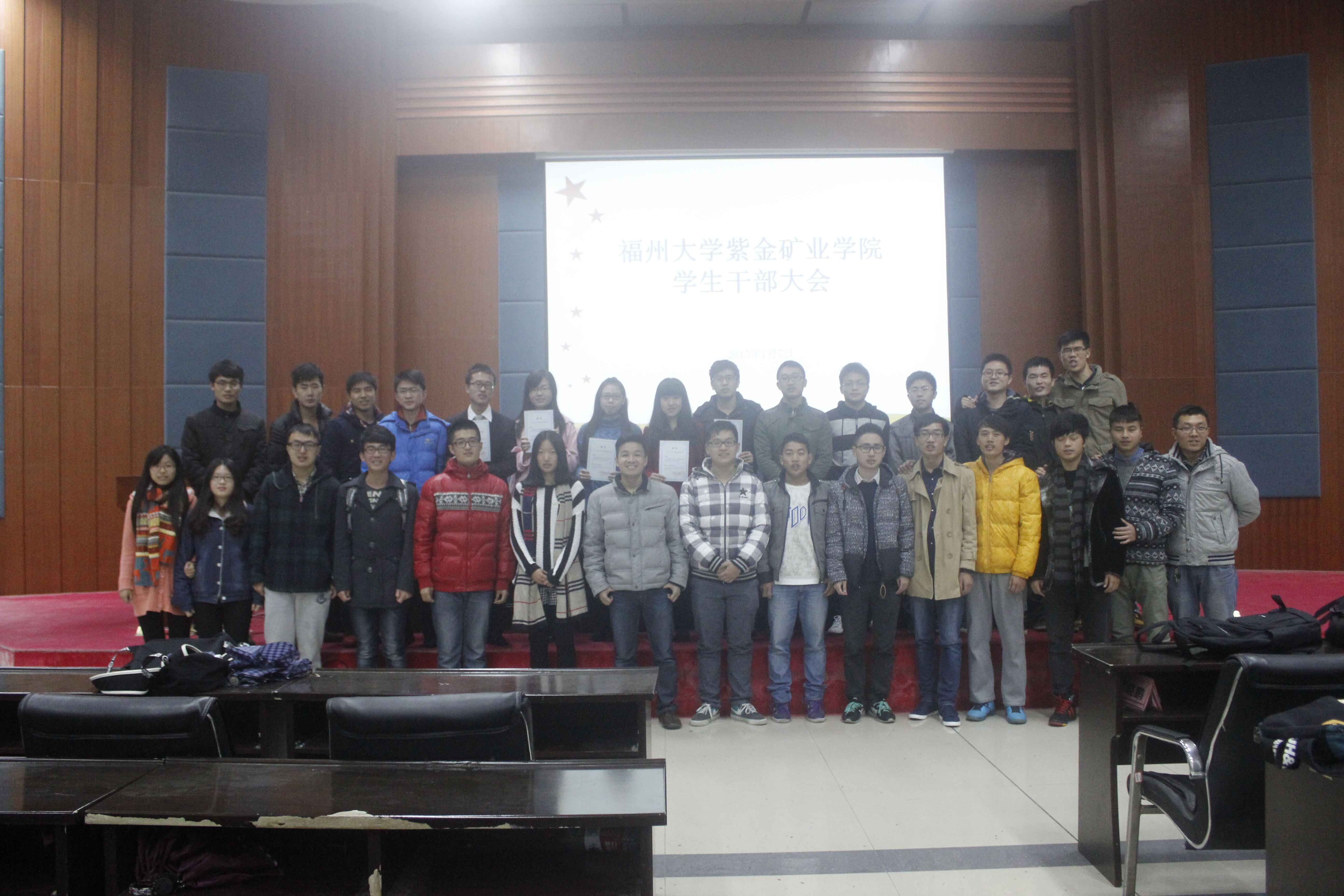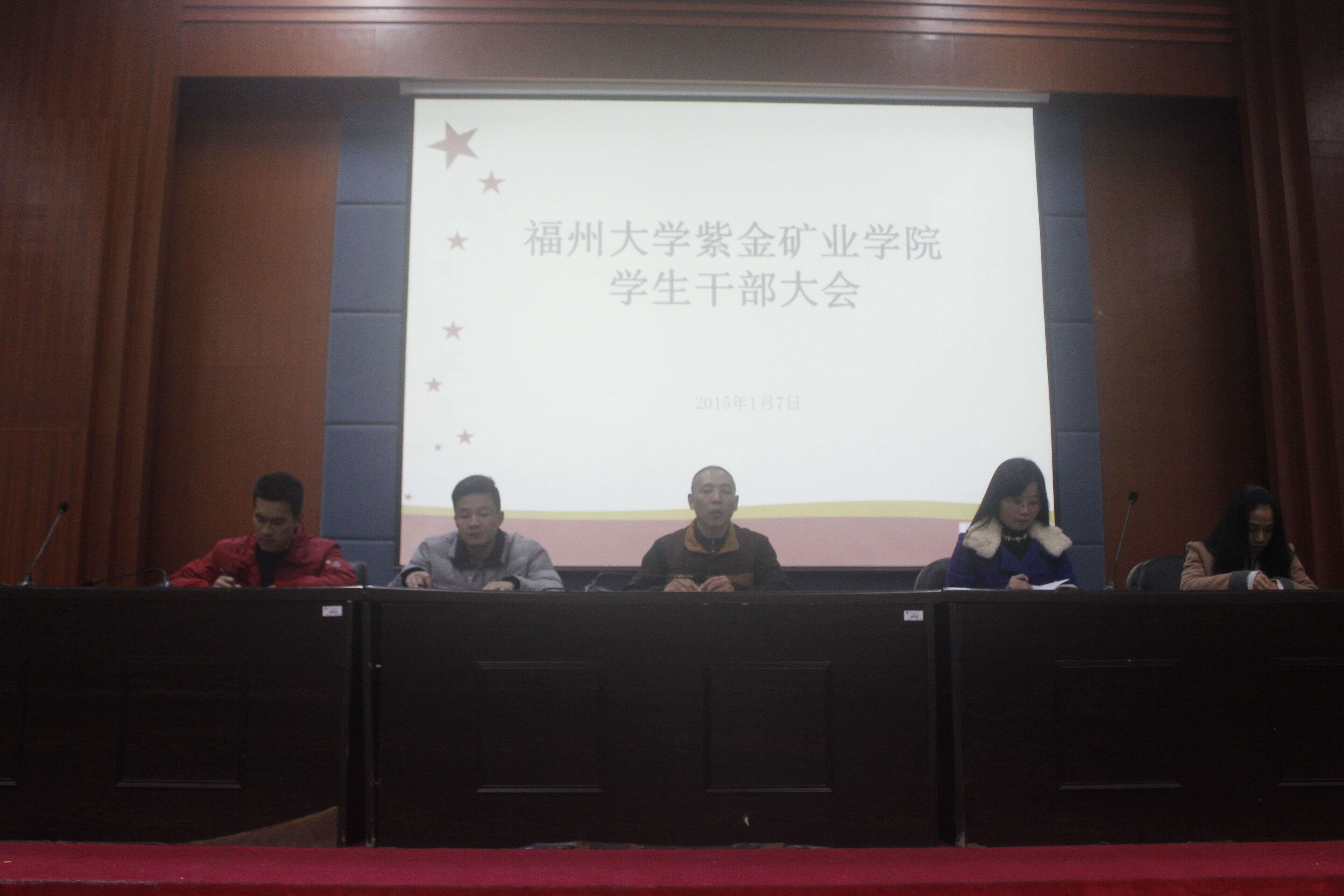 2015年1月7日晚6时许,太阳集团tcy8722紫金矿业学院学生干部大会在学院报告厅顺利举行。出席本次大会的学院领导和老师有院党委副书记余飞、院团委书记李金土以及各年级辅导员。紫金矿业学院团委、学生会第二届第一任的全体学生干部及各班级、团支部主要干部参加了本次大会。大会由院团委副书记韩雪靖同学主持。