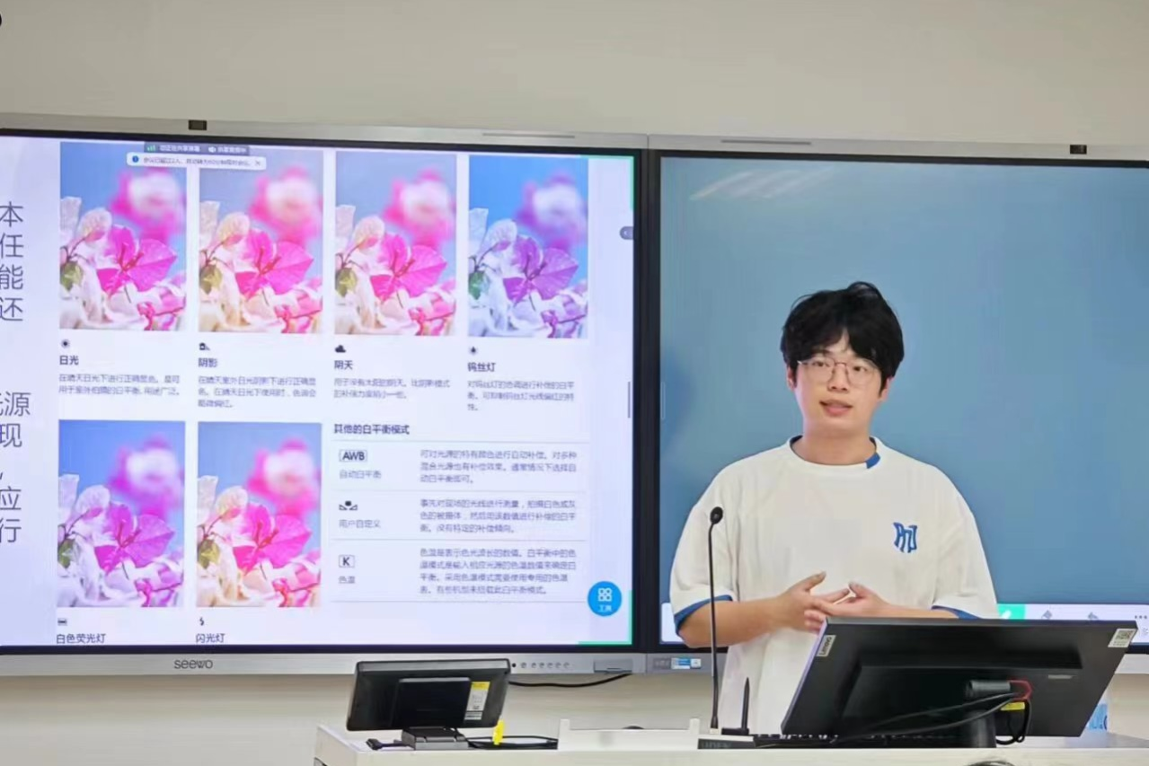 针对不同场景,林学长也给出不同的拍摄方法。具体讲解了会议现场、文艺演出、体育活动和讲座拍摄等。他都给出了切实可行的建议和指导。此外,他还分享了一些摄影小技巧,如白平衡和曝光补偿的应用等。